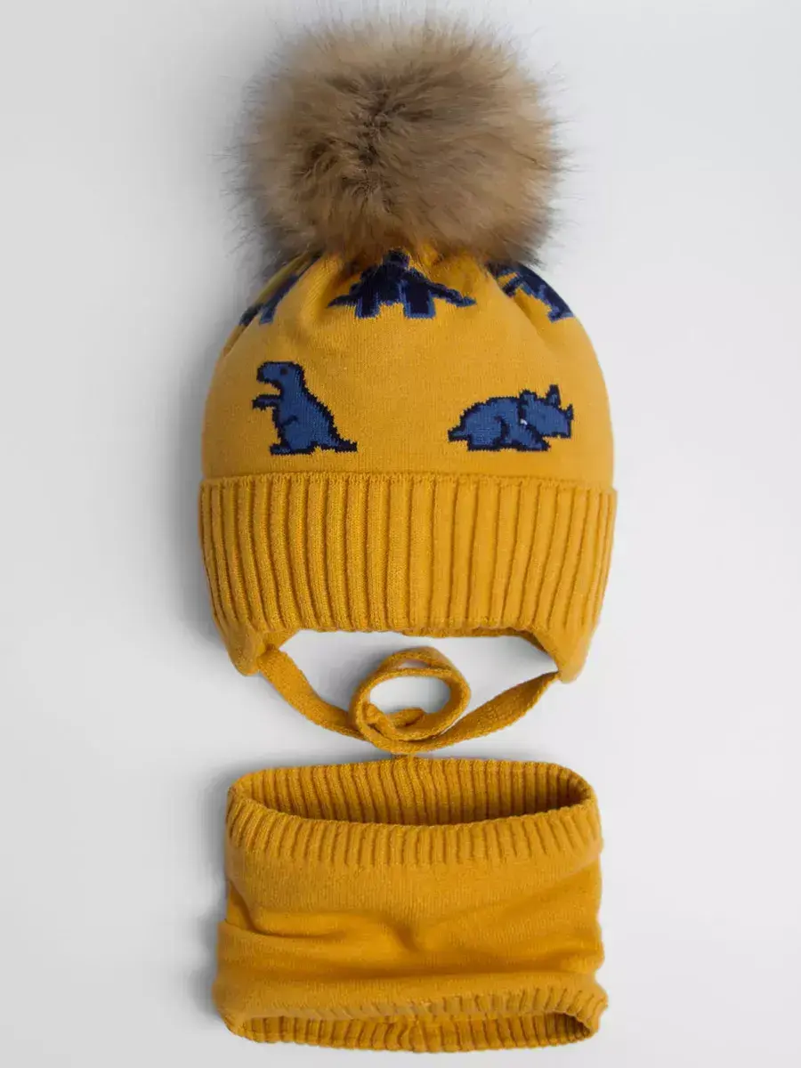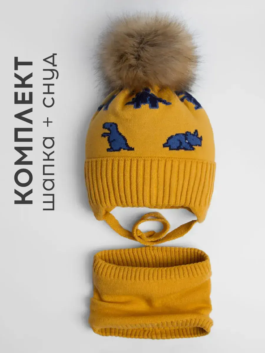 Представляем вашему вниманию уютную зимнюю шапку для мальчика и снуд, которые станут не только теплым аксессуаром в холодное время года, но и стильным дополнением к зимнему образу вашего ребенка. Эта шапка и снуд и для детей с узором “динозавры” подойдёт под любой образ благодаря широкому ассортименту цветов и универсальному дизайну. Этот зимний комплект для мальчика выполнены из высококачественной пряжи, которая обеспечивает оптимальное сохранение тепла и комфорт при носке. Вязаный узор на детской шапке не только красиво смотрится, но и способствует лучшей вентиляции, позволяя коже дышать и не перегреваться в помещении. Одной из особенностей шапочки для малышей являются удобные завязки, благодаря которым шапка надежно фиксируется на голове ребенка и не сползает, обеспечивая защиту от ветра и снега. Шапку бини для малышей крашает бубон из натурального меха. Вязаный из высококачественной пряжи, наш снуд для малышей обеспечивает максимальный комфорт и тепло.