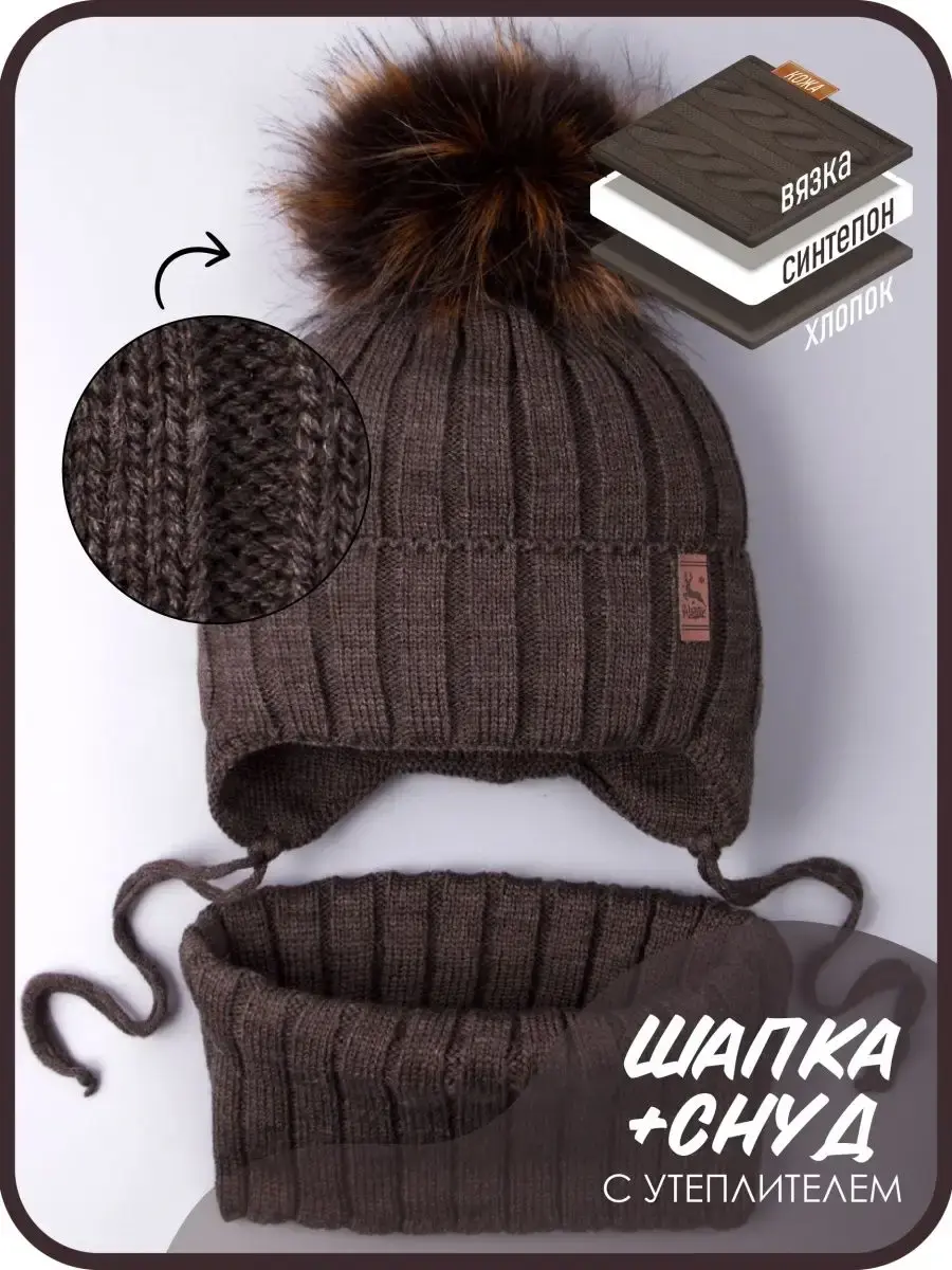 Для того, чтобы изделие прослужило Вам как можно дольше, мы рекомендуем ручную или машинную бережную стирку при t не более 30 С. Зимняя теплая шапка со снудом для мальчика непременно должна быть у Вашего ребенка! Сделано в России.