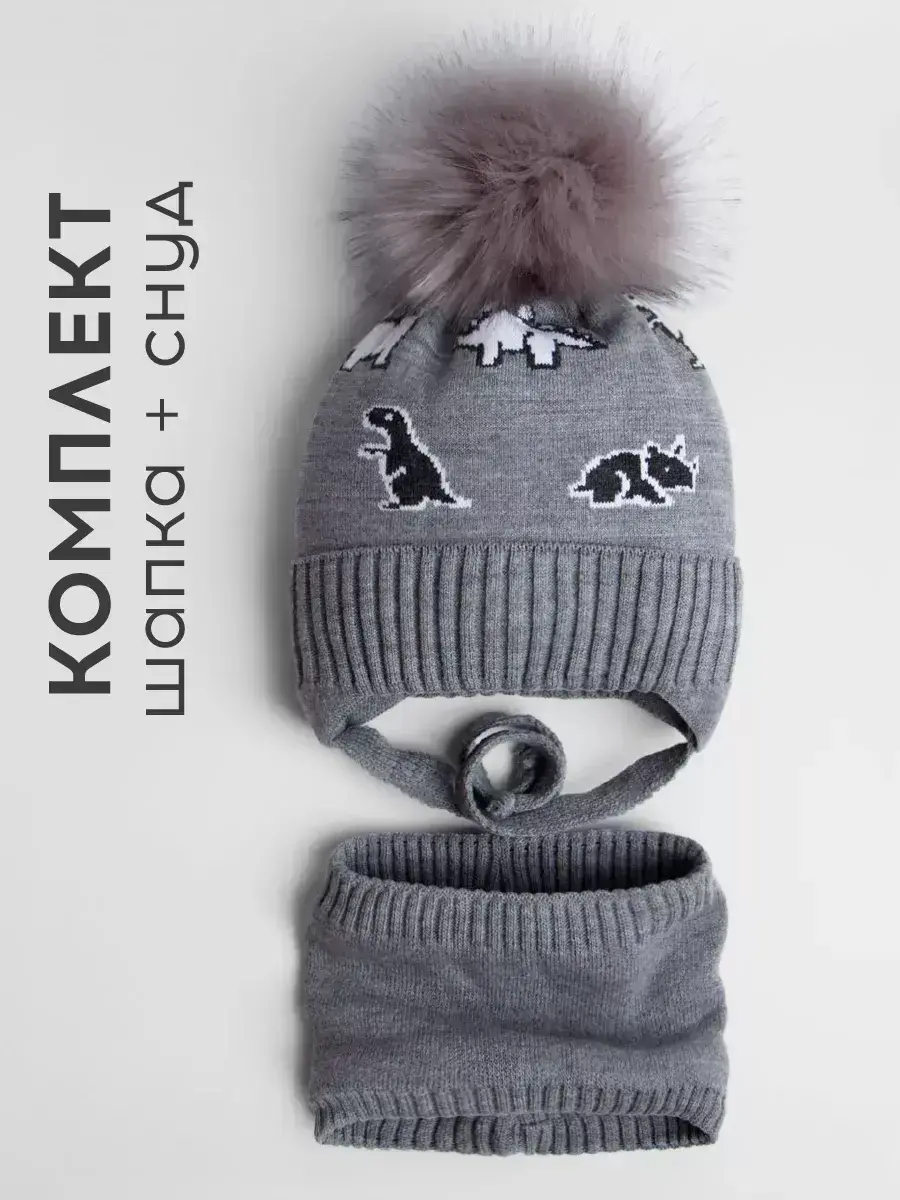 Представляем вашему вниманию уютную зимнюю шапку для мальчика и снуд, которые станут не только теплым аксессуаром в холодное время года, но и стильным дополнением к зимнему образу вашего ребенка. Эта шапка и снуд и для детей с узором “динозавры” подойдёт под любой образ благодаря широкому ассортименту цветов и универсальному дизайну. Этот зимний комплект для мальчика выполнены из высококачественной пряжи, которая обеспечивает оптимальное сохранение тепла и комфорт при носке. Вязаный узор на детской шапке не только красиво смотрится, но и способствует лучшей вентиляции, позволяя коже дышать и не перегреваться в помещении. Одной из особенностей шапочки для малышей являются удобные завязки, благодаря которым шапка надежно фиксируется на голове ребенка и не сползает, обеспечивая защиту от ветра и снега. Шапку бини для малышей крашает бубон из натурального меха. Вязаный из высококачественной пряжи, наш снуд для малышей обеспечивает максимальный комфорт и тепло.