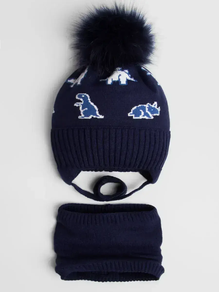 Представляем вашему вниманию уютную зимнюю шапку для мальчика и снуд, которые станут не только теплым аксессуаром в холодное время года, но и стильным дополнением к зимнему образу вашего ребенка. Эта шапка и снуд и для детей с узором “динозавры” подойдёт под любой образ благодаря широкому ассортименту цветов и универсальному дизайну. Этот зимний комплект для мальчика выполнены из высококачественной пряжи, которая обеспечивает оптимальное сохранение тепла и комфорт при носке. Вязаный узор на детской шапке не только красиво смотрится, но и способствует лучшей вентиляции, позволяя коже дышать и не перегреваться в помещении. Одной из особенностей шапочки для малышей являются удобные завязки, благодаря которым шапка надежно фиксируется на голове ребенка и не сползает, обеспечивая защиту от ветра и снега. Шапку бини для малышей крашает бубон из натурального меха. Вязаный из высококачественной пряжи, наш снуд для малышей обеспечивает максимальный комфорт и тепло.