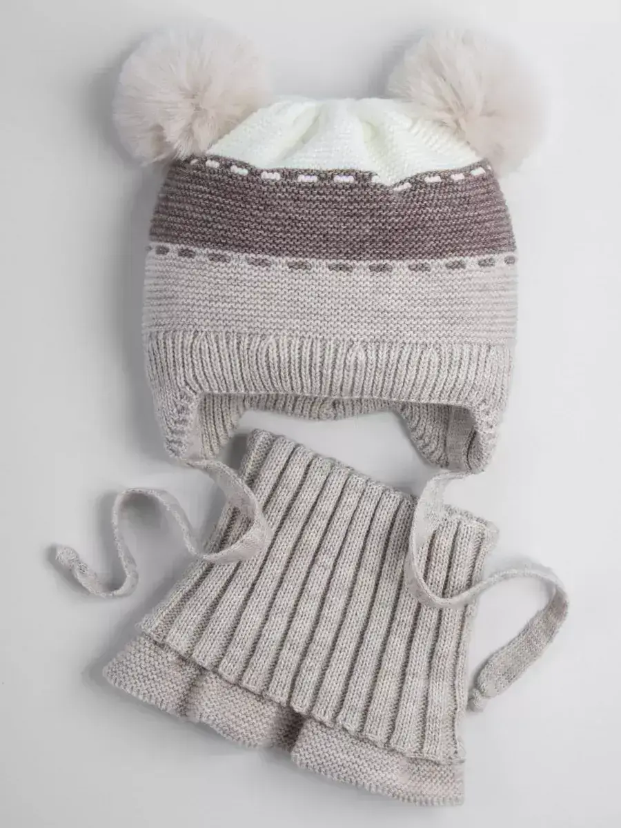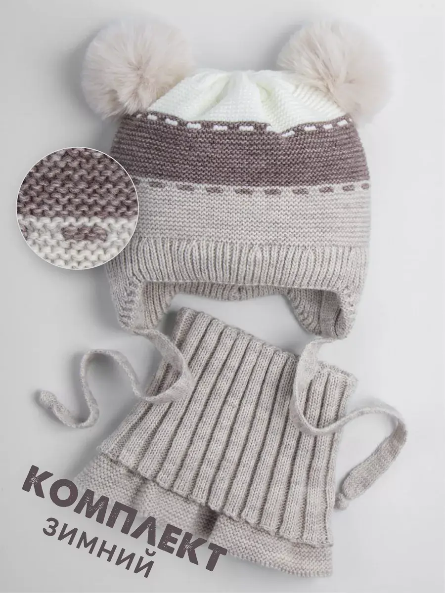 Зимняя детская шапка в комплекте с манишкой — лучшее решение на осень и зиму для вашего ребенка. Шапка для малыша не только защитит от холода и ветра, но и станет красивым дополнением стильного образа! Головной убор с двумя помпонами из искусственного меха отлично подойдет как мальчику, так и девочке. Модель представлена в трех размерах для детей от шести месяцев до трех лет. Шапочка для малышей в полоску утеплена синтепоном, который спрятан под хлопковой подкладкой. Большое разнообразие расцветок позволит подобрать изделие под любой гардероб. Вязаная манишка детская хорошо тянется, закрывает шею и плечи, не сдавливает и не колется. Маленькие дети могут легко надевать и снимать ее самостоятельно, незаменимая вещь для школьных будней и детского садика. Теплая шапочка детская имеет вставки в области лба и ушей для дополнительной защиты от зимнего холода. Мягкие завязки имеют оптимальную длину и легко завязываются бантом. Детская шапочка с помпонами идеально подходит для активного отдыха на свежем воздухе и повседневной носки. Благодаря высококачественному составу (гипоаллергенный акрил, акрил) пряжа не вызывает раздражения на чувствительной коже ребёнка. Для того чтобы шапка для девочки прослужит вам дольше, если вы будете бережно стирать её при температуре не выше 30 °C и сушить на горизонтальной поверхности. Приятных покупок!