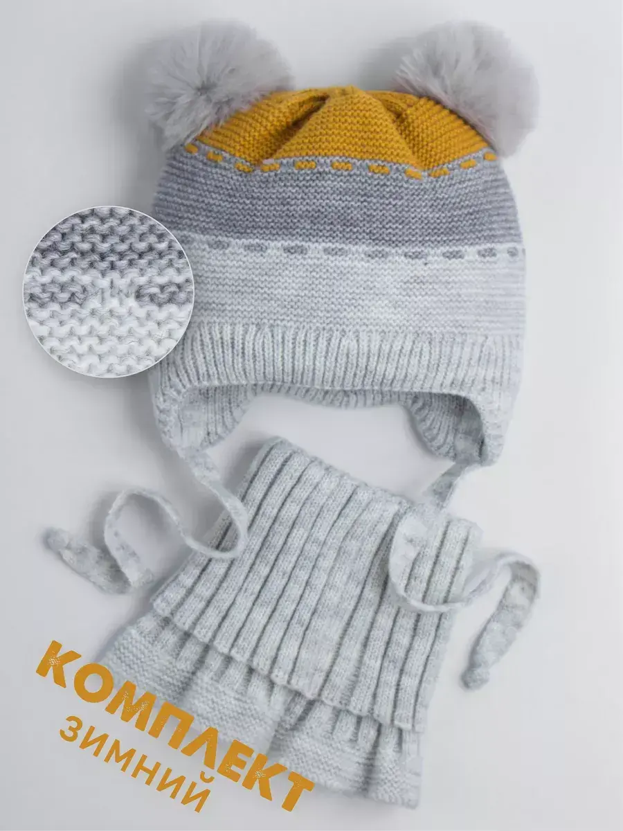 Зимняя детская шапка в комплекте с манишкой — лучшее решение на осень и зиму для вашего ребенка. Шапка для малыша не только защитит от холода и ветра, но и станет красивым дополнением стильного образа! Головной убор с двумя помпонами из искусственного меха отлично подойдет как мальчику, так и девочке. Модель представлена в трех размерах для детей от шести месяцев до трех лет. Шапочка для малышей в полоску утеплена синтепоном, который спрятан под хлопковой подкладкой. Большое разнообразие расцветок позволит подобрать изделие под любой гардероб. Вязаная манишка детская хорошо тянется, закрывает шею и плечи, не сдавливает и не колется. Маленькие дети могут легко надевать и снимать ее самостоятельно, незаменимая вещь для школьных будней и детского садика. Теплая шапочка детская имеет вставки в области лба и ушей для дополнительной защиты от зимнего холода. Мягкие завязки имеют оптимальную длину и легко завязываются бантом. Детская шапочка с помпонами идеально подходит для активного отдыха на свежем воздухе и повседневной носки. Благодаря высококачественному составу (гипоаллергенный акрил, акрил) пряжа не вызывает раздражения на чувствительной коже ребёнка. Для того чтобы шапка для девочки прослужит вам дольше, если вы будете бережно стирать её при температуре не выше 30 °C и сушить на горизонтальной поверхности. Приятных покупок!