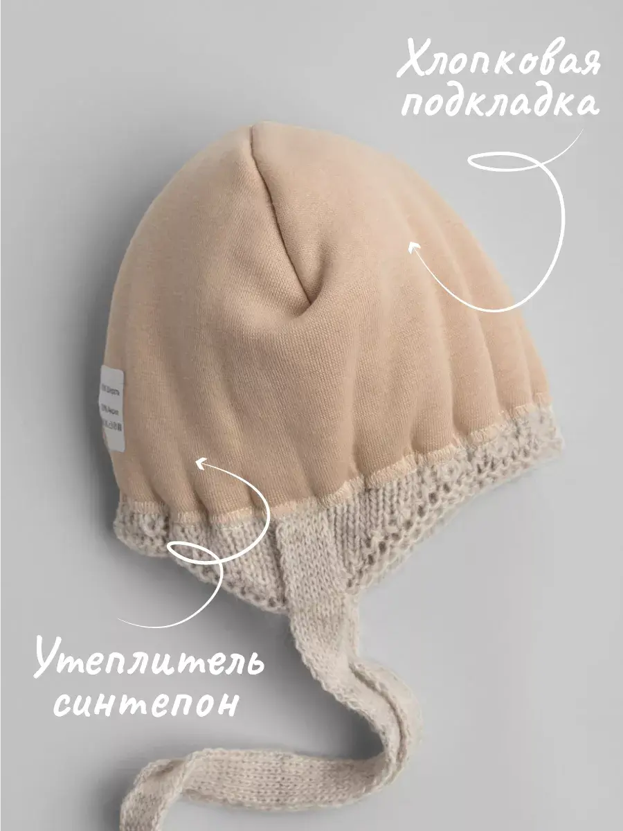 Теплая вязаная шапка станет отличным решением для малышей в холодное время года. Зимний головной убор для мальчика утеплен синтепоном, который спрятан под хлопковую подкладку, что позволяет лучше сохранять тепло и не дает голове ребенка вспотеть. Шапочка осенняя на завязках - это прекрасный вариант на выписку для новорожденных. Качественный гипоаллергенный состав пряжи (гипоаллергенный акрил с добавлением акрила) не вызовет раздражения на чувствительной коже малютки.