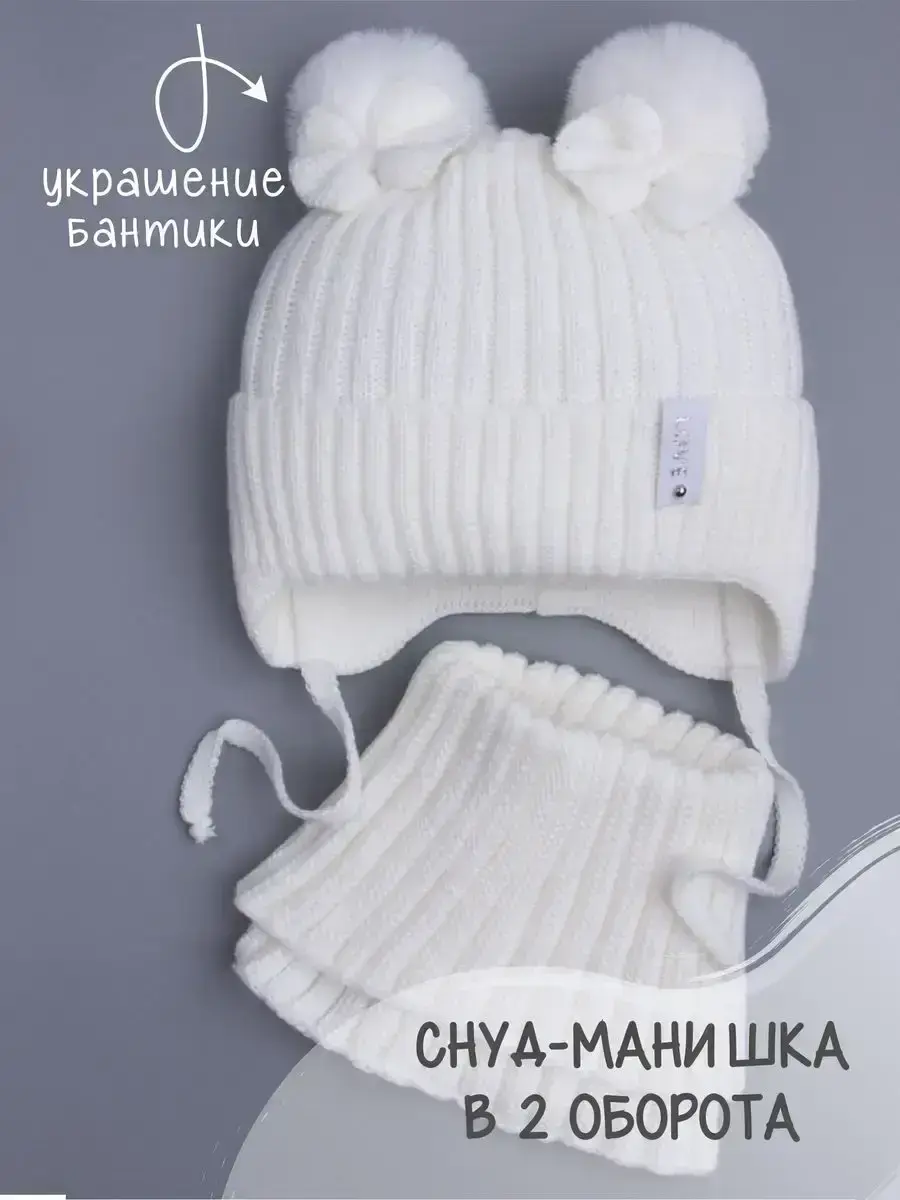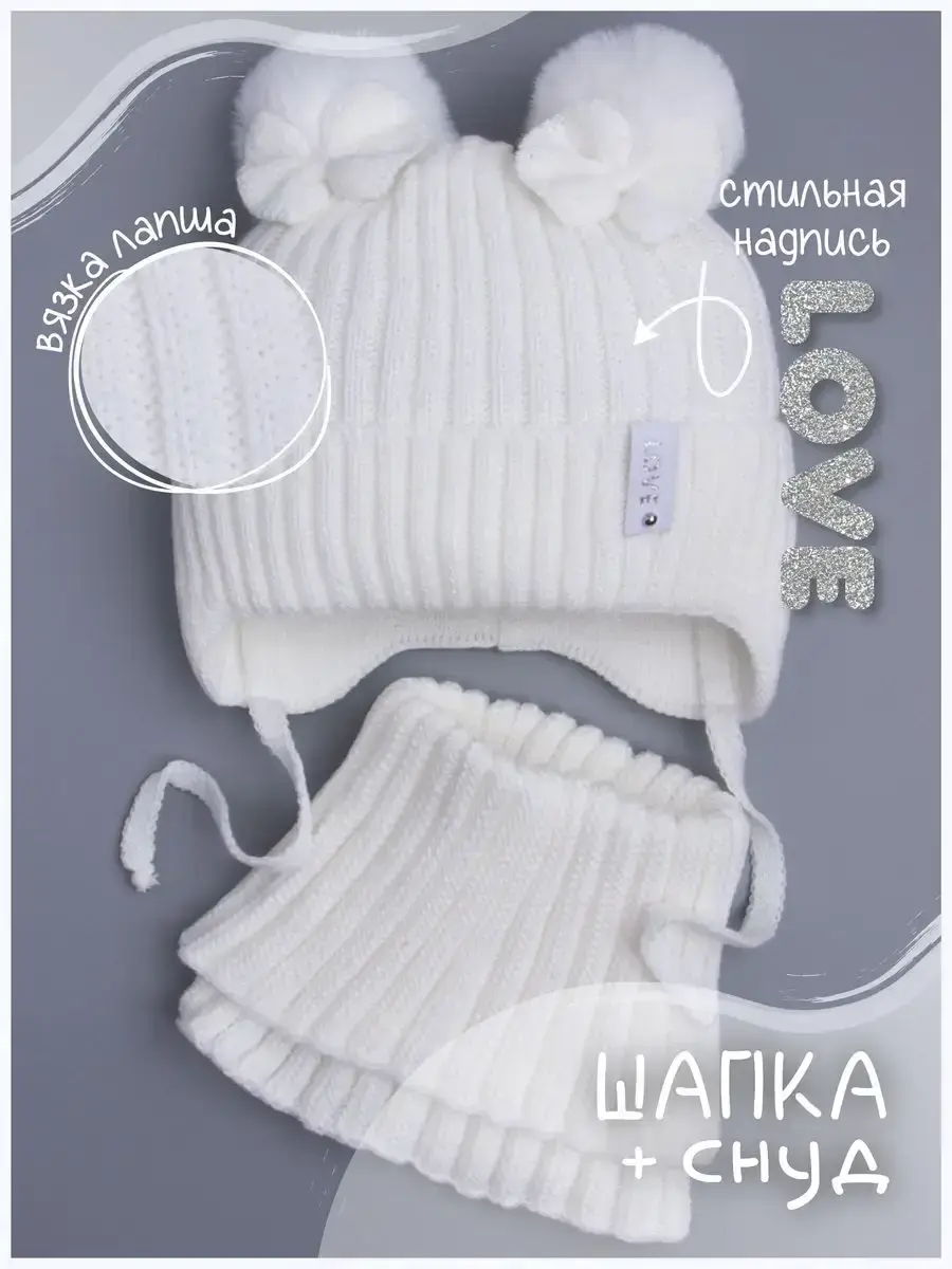 Шапка для девочки на завязках и снуд красиво дополнят образ маленькой принцессы! Детский головной убор отлично подойдет на зиму и холодную осень. Он представлен в нескольких размерах для детей от шести месяцев до десяти лет. Детский комплект выполнен из высококачественной пряжи, поэтому он очень мягкий, теплый и долговечный. Утепленная синтепоном шапочка для девочки не даст замерзнуть вашему ребенку даже при температуре -25 °C. Вязаный зимний детский комплект представлен в широкой линейке самых модных расцветок и прекрасно сочетается с любым гардеробом малыша. Детская шапка с двумя помпонами в виде ушек и милыми бантиками придаст настроение и нежность любому наряду! Стильная съемная брошь с надписью «LOVE» добавляет индивидуальности, при этом ее легко отстегнуть на время ухода за изделием. Снуд детский невероятно мягкий и хорошо защищает шею от холода. Он легко растягивается и складывается вдвое. Манишку можно надевать как под верхнюю одежду, так и на капюшон. Комплект для малыша станет удобным атрибутом для активного отдыха и прогулок на свежем воздухе!