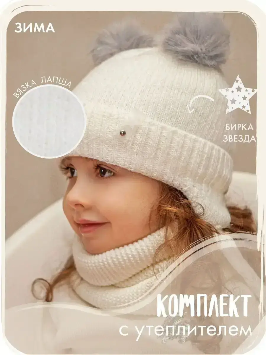 Шапка зимняя детская и снуд станут стильным дополнением к образу Вашего ребенка! Подойдет мальчикам и девочкам. Вязаный комплект выполнен из высококачественной мягкой пряжи, которая хорошо сохраняет тепло, не колется и не вызывает раздражения. Головной убор детский представлен в широкой цветовой линейке и отлично сочетается с любым гардеробом. Шапочка детская утеплена синтепоном, который спрятан под хлопковой подкладкой, поэтому находиться в ней в самые морозные дни Вашему малышу будет комфортно. Большой размерный ряд рассчитан для детей от трех месяцев до десяти лет. Декорировано изделие модной съемной брошью с изображением звездочки и двумя бубонами в виде ушек, что придает настроения и не оставляет равнодушными окружающих. Осеннюю шапку детскую можно носить как вместе со снудом из комплекта, так и совмещать с другими аксессуарами. Набор не колется и не натирает кожу ребенка, отлично подходит для прогулок и активного отдыха на свежем воздухе. В каталог нашего магазина представлен большой выбор головных уборов для детей и взрослых на любой сезон!