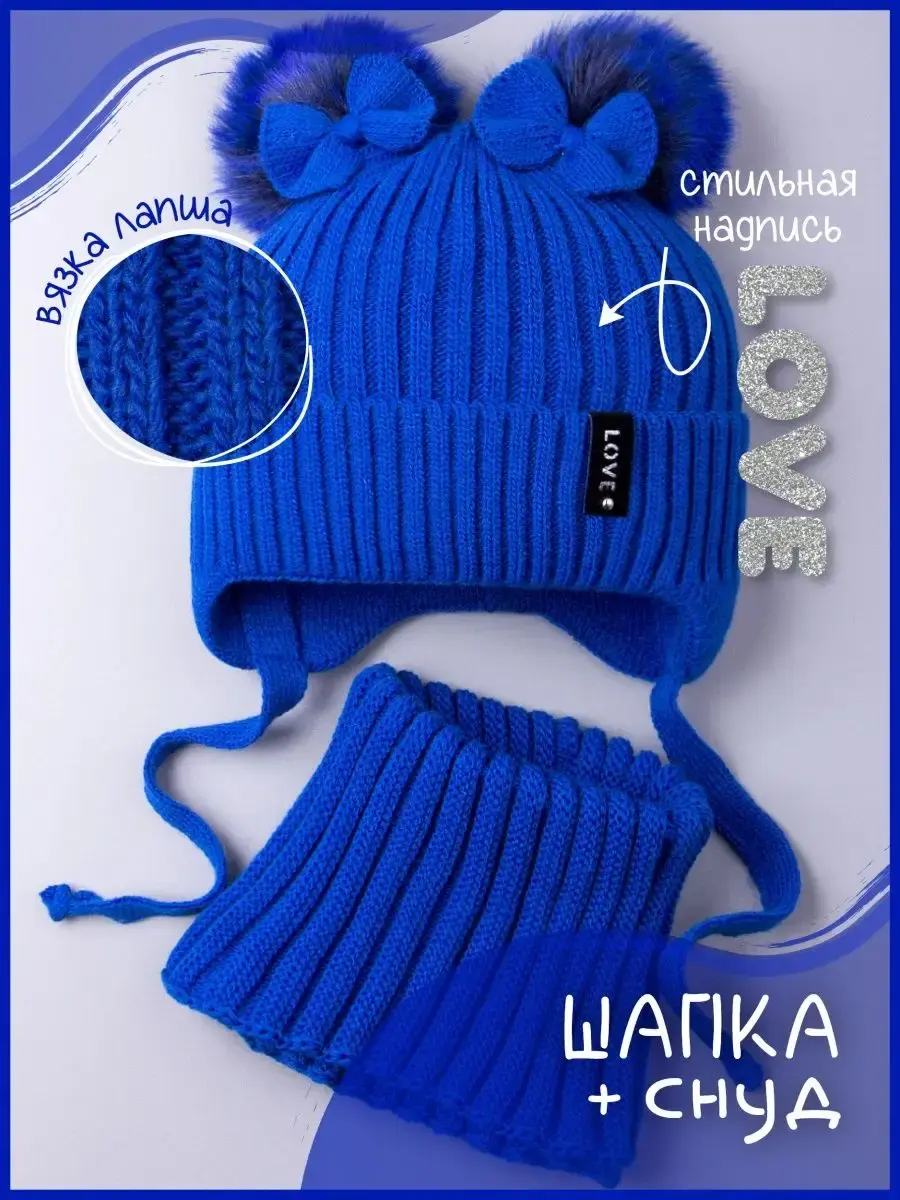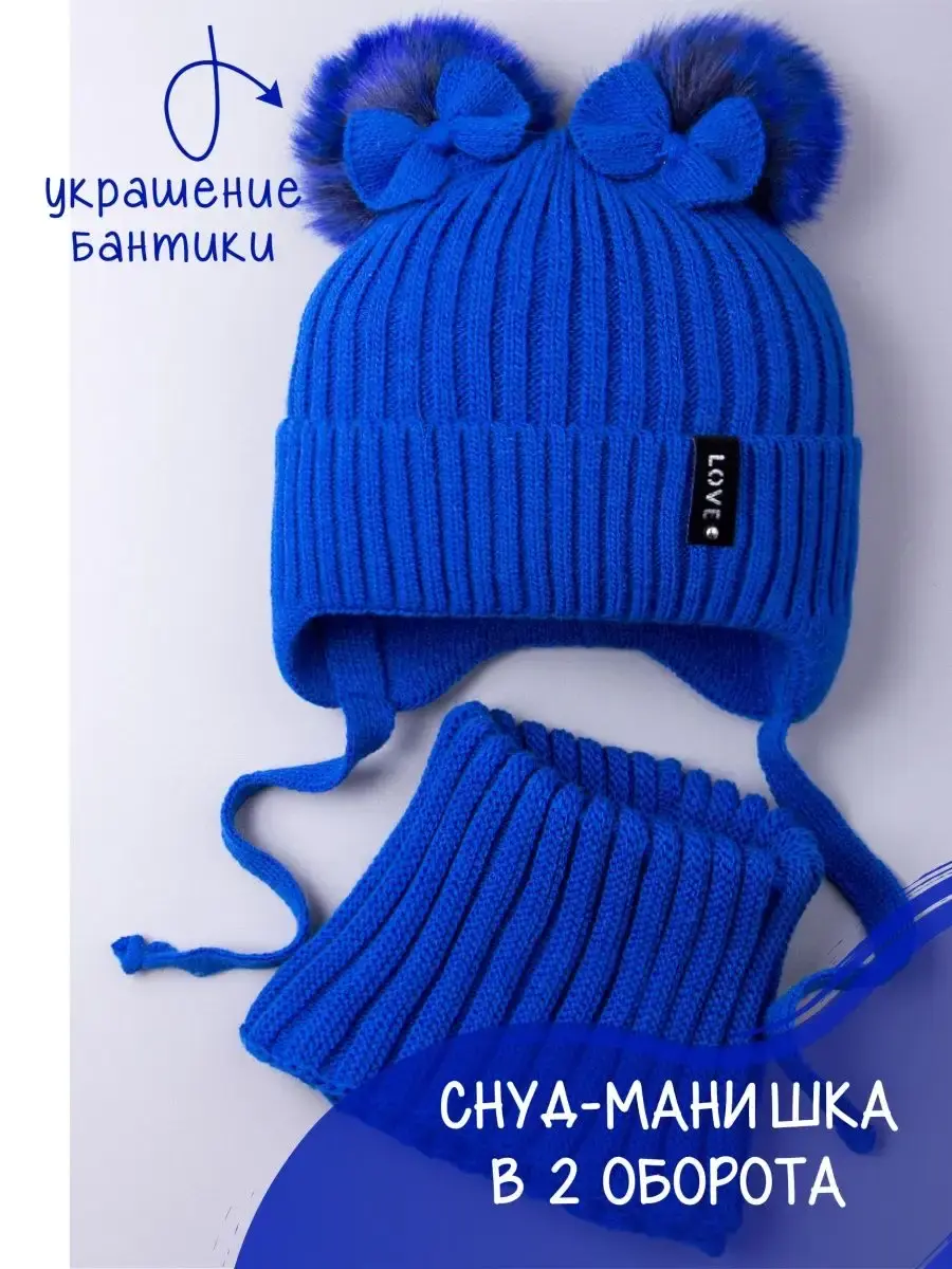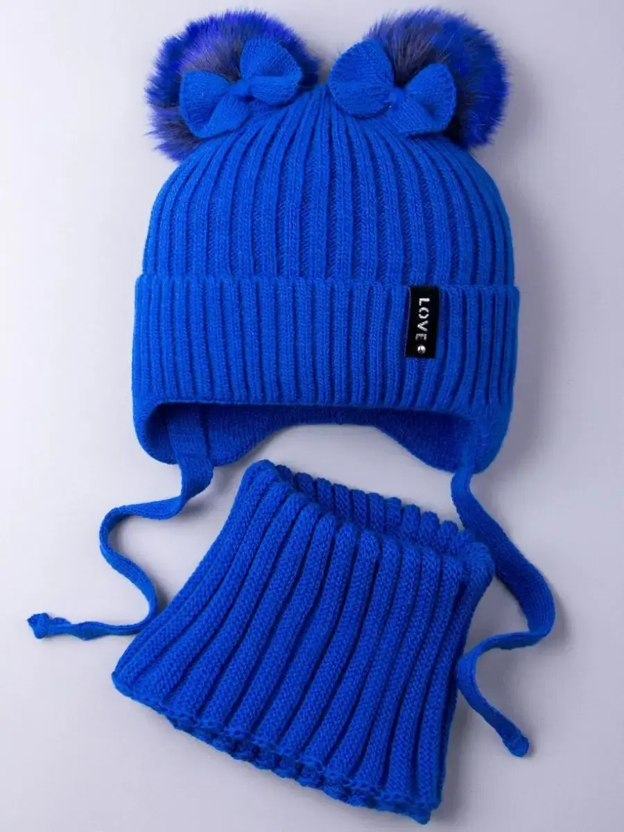 Шапка для девочки на завязках и снуд красиво дополнят образ маленькой принцессы! Детский головной убор отлично подойдет на зиму и холодную осень. Он представлен в нескольких размерах для детей от шести месяцев до десяти лет. Детский комплект выполнен из высококачественной пряжи, поэтому он очень мягкий, теплый и долговечный. Утепленная синтепоном шапочка для девочки не даст замерзнуть вашему ребенку даже при температуре -25 °C. Вязаный зимний детский комплект представлен в широкой линейке самых модных расцветок и прекрасно сочетается с любым гардеробом малыша. Детская шапка с двумя помпонами в виде ушек и милыми бантиками придаст настроение и нежность любому наряду! Стильная съемная брошь с надписью «LOVE» добавляет индивидуальности, при этом ее легко отстегнуть на время ухода за изделием. Снуд детский невероятно мягкий и хорошо защищает шею от холода. Он легко растягивается и складывается вдвое. Манишку можно надевать как под верхнюю одежду, так и на капюшон. Комплект для малыша станет удобным атрибутом для активного отдыха и прогулок на свежем воздухе!