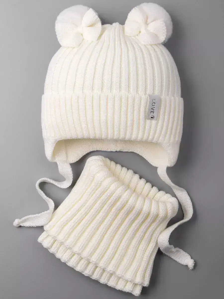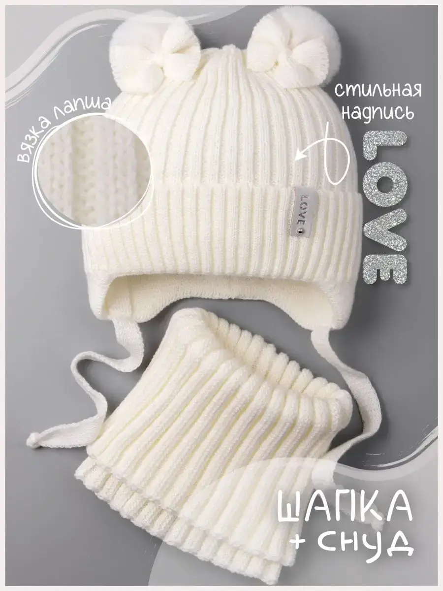 Шапка для девочки на завязках и снуд красиво дополнят образ маленькой принцессы! Детский головной убор отлично подойдет на зиму и холодную осень. Он представлен в нескольких размерах для детей от шести месяцев до десяти лет. Детский комплект выполнен из высококачественной пряжи, поэтому он очень мягкий, теплый и долговечный. Утепленная синтепоном шапочка для девочки не даст замерзнуть вашему ребенку даже при температуре -25 °C. Вязаный зимний детский комплект представлен в широкой линейке самых модных расцветок и прекрасно сочетается с любым гардеробом малыша. Детская шапка с двумя помпонами в виде ушек и милыми бантиками придаст настроение и нежность любому наряду! Стильная съемная брошь с надписью «LOVE» добавляет индивидуальности, при этом ее легко отстегнуть на время ухода за изделием. Снуд детский невероятно мягкий и хорошо защищает шею от холода. Он легко растягивается и складывается вдвое. Манишку можно надевать как под верхнюю одежду, так и на капюшон. Комплект для малыша станет удобным атрибутом для активного отдыха и прогулок на свежем воздухе!
