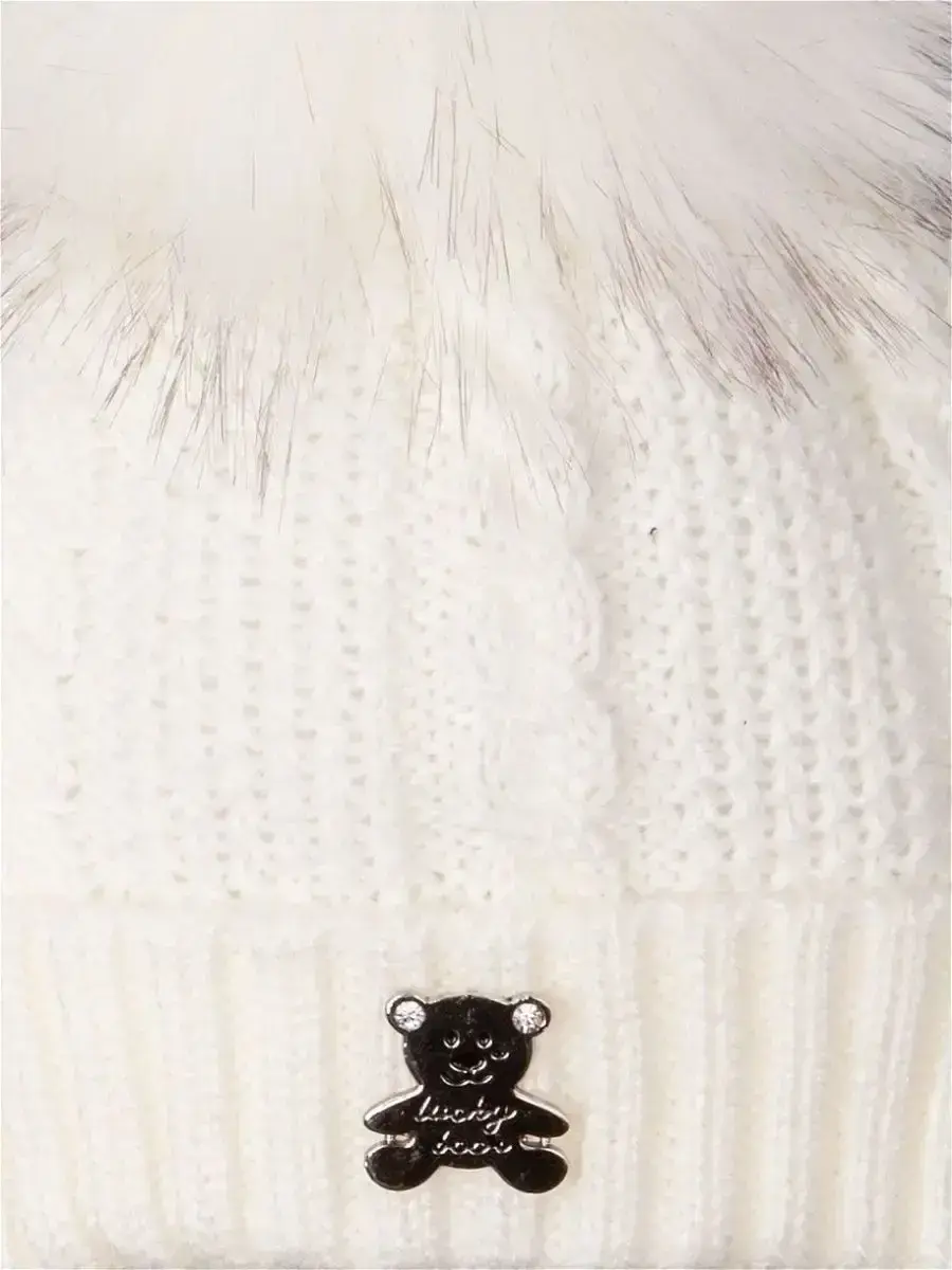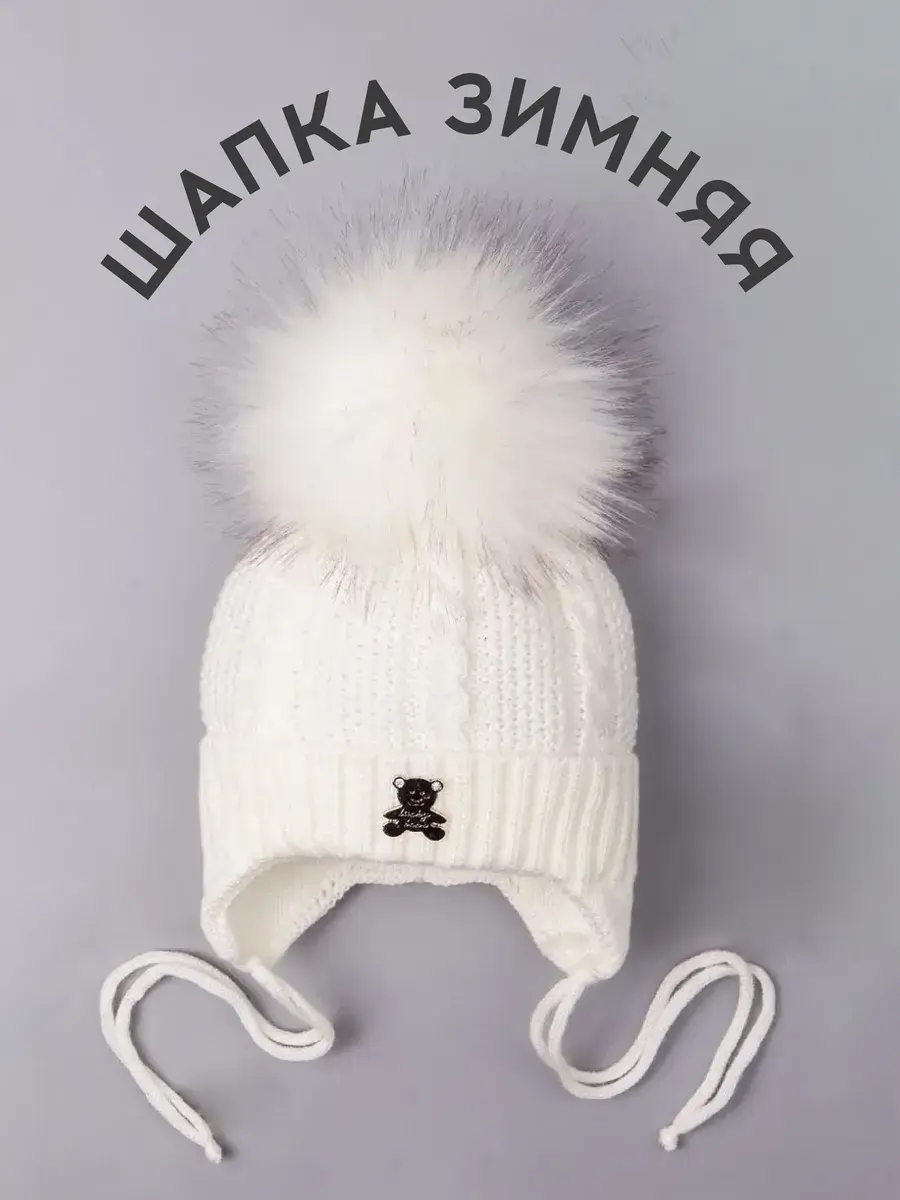 Шапка выполнена вязкой "коса"из высококачественной пряжи (в составе гиппоаллергенный акрил), приятная на ощупь ощущение и комфортна в носке. Красивый пышный помпон из искусственного меха и стильная металлическая брошь в виде медвежонка придают головному убору уникальный и стильный вид! Модель отлично подойдет как для мальчиков, так и для девочек.