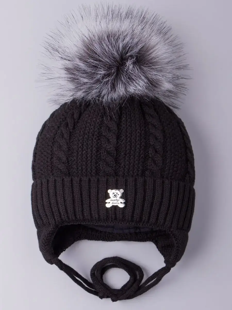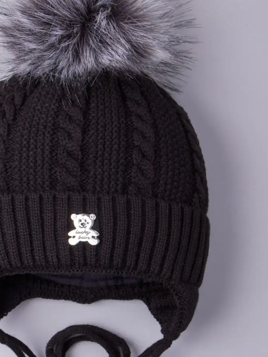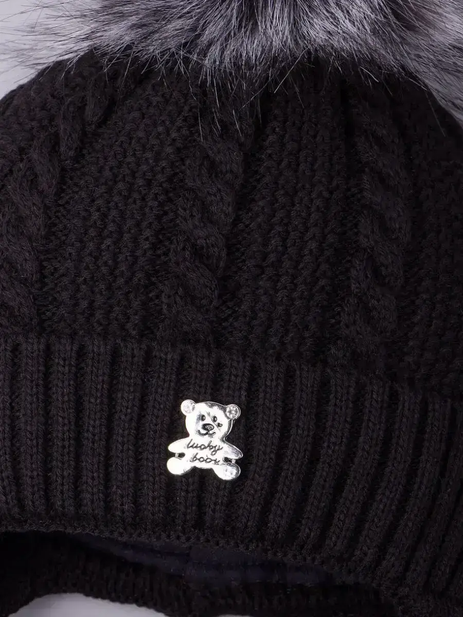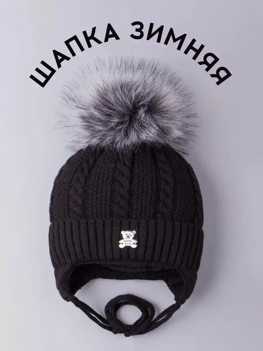 Шапка выполнена вязкой "коса"из высококачественной пряжи (в составе гиппоаллергенный акрил), приятная на ощупь ощущение и комфортна в носке. Красивый пышный помпон из искусственного меха и стильная металлическая брошь в виде медвежонка придают головному убору уникальный и стильный вид! Модель отлично подойдет как для мальчиков, так и для девочек.