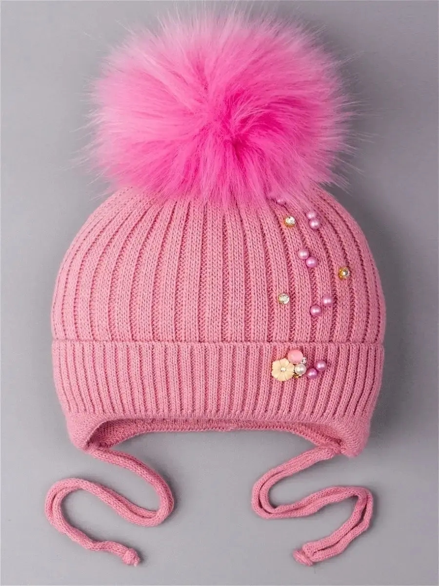 Шапка детская для девочки с помпоном - это отличное решение на зиму и холодную осень. Стильная шапочка для детей станет прекрасным дополнением к комбинезону, куртке или пальто. Модель представлена в едином размере для малышей от 3 до 6 месяцев. Шапка зимняя для девочки на завязках утеплена синтепоном и дополнена хлопковой подкладкой. Декорирован детский головной убор красивой брошкой из страз и помпоном. Помпон из искусственного меха станет более пышным, если его подержать над феном несколько секунд. Теплая детская вязаная шапочка-это идеальный вариант для прогулок и активного отдыха на свежем воздухе! Мягкое и теплое полотно вязаной шапки сохранит первоначальную форму даже после долгой носки. Гипоаллергенный материал пряжи подходит для детей с чувствительной кожей. Чтобы изделие прослужило Вам как можно дольше, мы рекомендуем ручную или машинную бережную стирку при t не более 30 С. Приятных Вам покупок! Сделано в России с любовью!