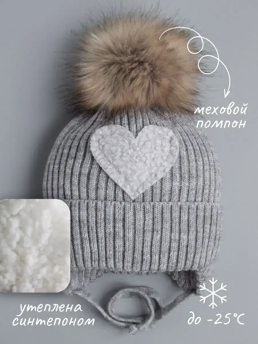 Шапка детская зимняя красиво завершит образ юной принцессы! Модель подойдет на зиму и позднюю осень. Шапка для девочки утеплена синтепоном и снабжена хлопковой подкладкой, которые обеспечивают дополнительное тепло и комфорт. Пышный помпон из искусственного меха и нашивка с изображением сердца придают нежности и подчеркивают индивидуальность. Зимняя шапочка для девочки выполнена из высококачественной пряжи (30% гипоаллергенный акрил, 70% акрил), поэтому прослужит Вашему ребенку не один сезон. Большой размерный ряд позволит выбрать изделие малышкам от девяти месяцев до десяти лет. Рекомендуемый температурный режим от -5 до -25С. Гипоаллергенный материал не вызовет раздражения на чувствительной коже ребенка. Вязаную теплую шапку можно носить как отдельно, так и совмещать с другими аксессуарами. Например, дополнив модель снудом или шарфом, Вы соберете модный комплект. Она станет удобным атрибутом для активного отдыха на свежем воздухе, прогулок и повседневной носки в школу и детский сад. В нашем магазине представлен большой ассортимент головных уборов для деток разных возрастов и на любой сезон! Приятных Вам покупок!