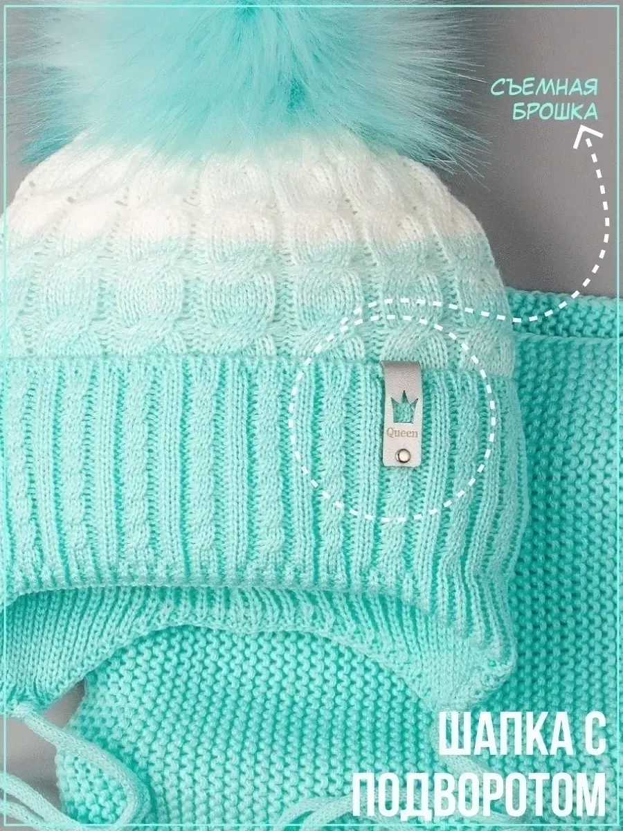Шапка детская для девочки в комплекте со снудом - это отличное решение на зиму и холодную осень. Легкая, но теплая вязаная зимняя шапочка отлично защитит от ветра и согреет ребёнка даже в самую морозную погоду при -25 С. Головной убор детский утеплен синтепоном, который спрятан под хлопковой подкладкой, благодаря которой голова ребенка не будет потеть. Снуд детский прекрасно тянется, не колется и хорошо растягивается. Его удобно носить как под верхней одеждой, так и заправив под капюшон, заменив им классический шарф. Большое разнообразие цветов поможет выбрать зимний комплект под любой наряд Вашей малышки. Оригинальная брошка с короной легко отстегивается на время ухода за изделием. Красивый помпон из искусственного меха мы рекомендуем распушить феном для придания объёма. Наш зимний комплект для девочки просто незаменим для школы, детского сада и прогулок на свежем воздухе. В фотографиях мы прикрепили удобную таблицу, с помощью которой Вы легко сможете подобрать подходящий размер согласно возрасту и объему головы. Модель выполнена из высококачественной пряжи (в составе акрил), поэтому сохранит первоначальный внешний вид и форму даже после множества стирок. Не упустите возможность порадовать своего ребенка таким практичным и красивым комплектом этой зимой. Сделано в России.