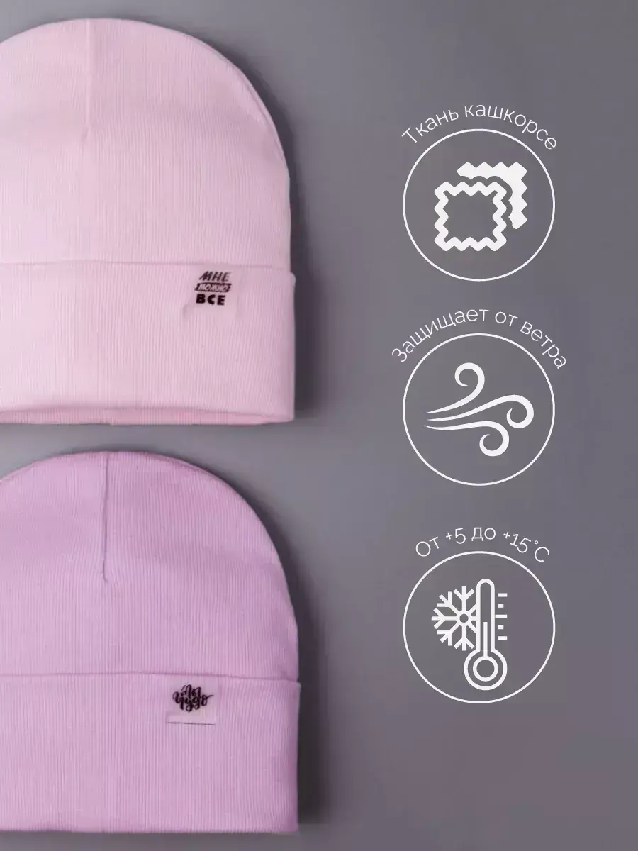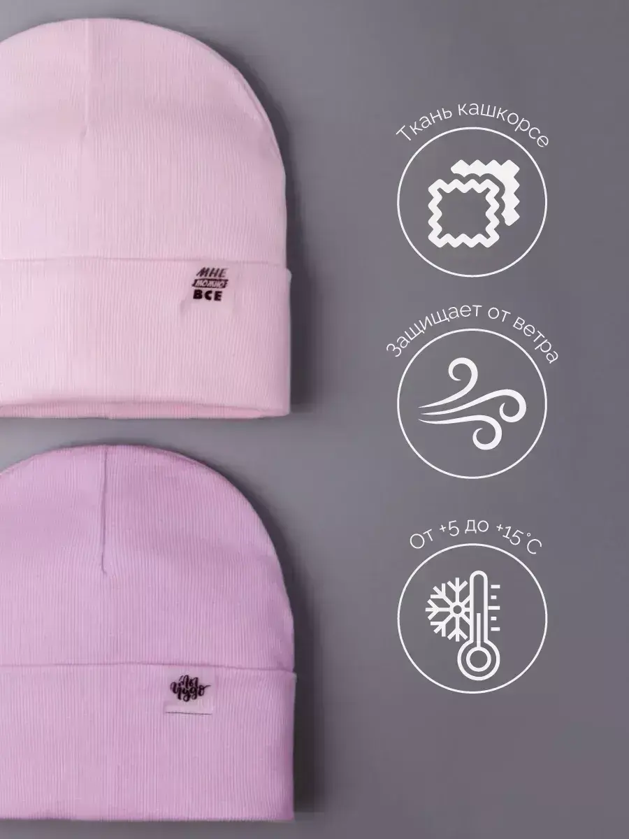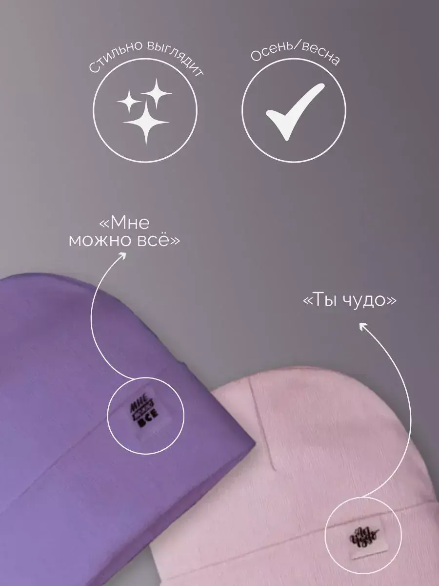 Комплект из двух шапочек - это необходимый базовый аксессуар в гардеробе ребенка на эту осень. Шапки детские демисезонные выполнены в одном стиле, но разные по цвету. Размер в в наборе единый. Осенние шапки детские подойдут детям от шести месяцев до десяти лет. Шапки детские необычайно мягкие и комфортные. Благодаря большому количеству расцветок модель легко подобрать практически к любому образу малыша. Шапки демисезонные детские подходят для мальчиков и девочек. Шапки девочки демисезон хорошо сидят на голове, плотный широкий отворот защищает ушки от холода и ветра. Осенние шапки детские -это прекрасный вариант для активного отдыха на свежем воздухе, прогулок, а также повседневной носки в школу и садик. В качестве декора использована прозрачная нашивка с надписью "Мне можно все" и "Мое чудо", что придает индивидуальности и оригинальности. Шапка для девочки изготовлена из высококачественного материала, поэтому надолго сохранит свой первоначальный вид. Для того, чтобы изделие радовало Вас дольше, мы рекомендуем только бережную ручную или машинную стирку при t не более 30С. Приятных Вам покупок! Сделано в России с любовью!