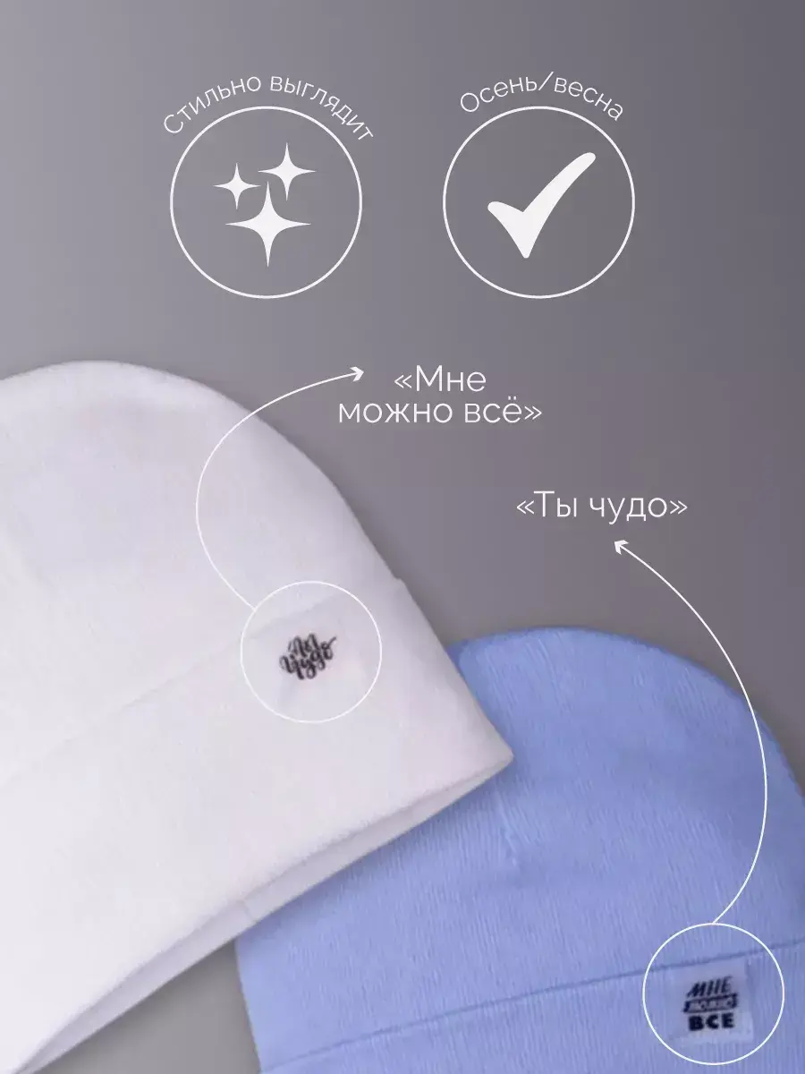 Комплект из двух шапочек - это необходимый базовый аксессуар в гардеробе ребенка на эту осень. Шапки детские демисезонные выполнены в одном стиле, но разные по цвету. Размер в в наборе единый. Осенние шапки детские подойдут детям от шести месяцев до десяти лет. Шапки детские необычайно мягкие и комфортные. Благодаря большому количеству расцветок модель легко подобрать практически к любому образу малыша. Шапки демисезонные детские подходят для мальчиков и девочек. Шапки девочки демисезон хорошо сидят на голове, плотный широкий отворот защищает ушки от холода и ветра. Осенние шапки детские -это прекрасный вариант для активного отдыха на свежем воздухе, прогулок, а также повседневной носки в школу и садик. В качестве декора использована прозрачная нашивка с надписью "Мне можно все" и "Мое чудо", что придает индивидуальности и оригинальности. Шапка для девочки изготовлена из высококачественного материала, поэтому надолго сохранит свой первоначальный вид. Для того, чтобы изделие радовало Вас дольше, мы рекомендуем только бережную ручную или машинную стирку при t не более 30С. Приятных Вам покупок! Сделано в России с любовью!