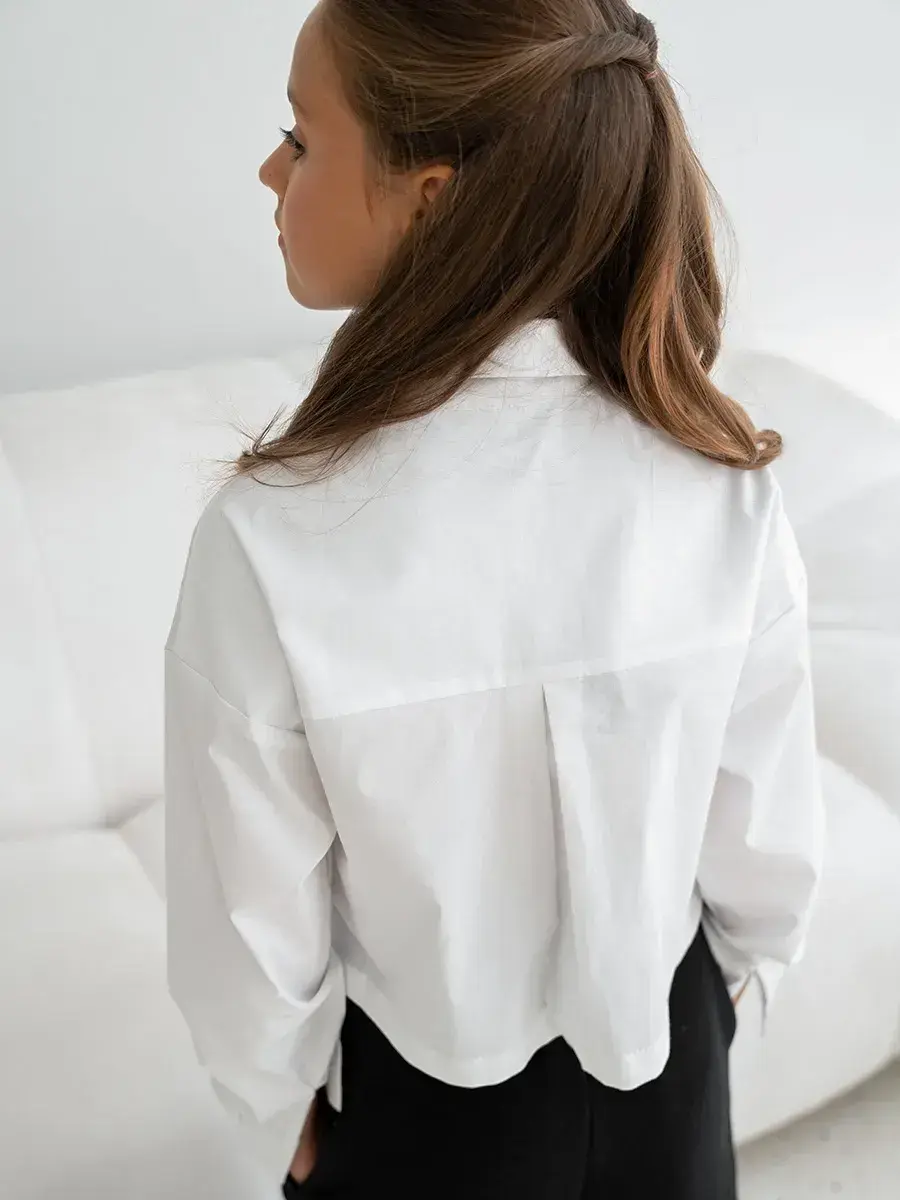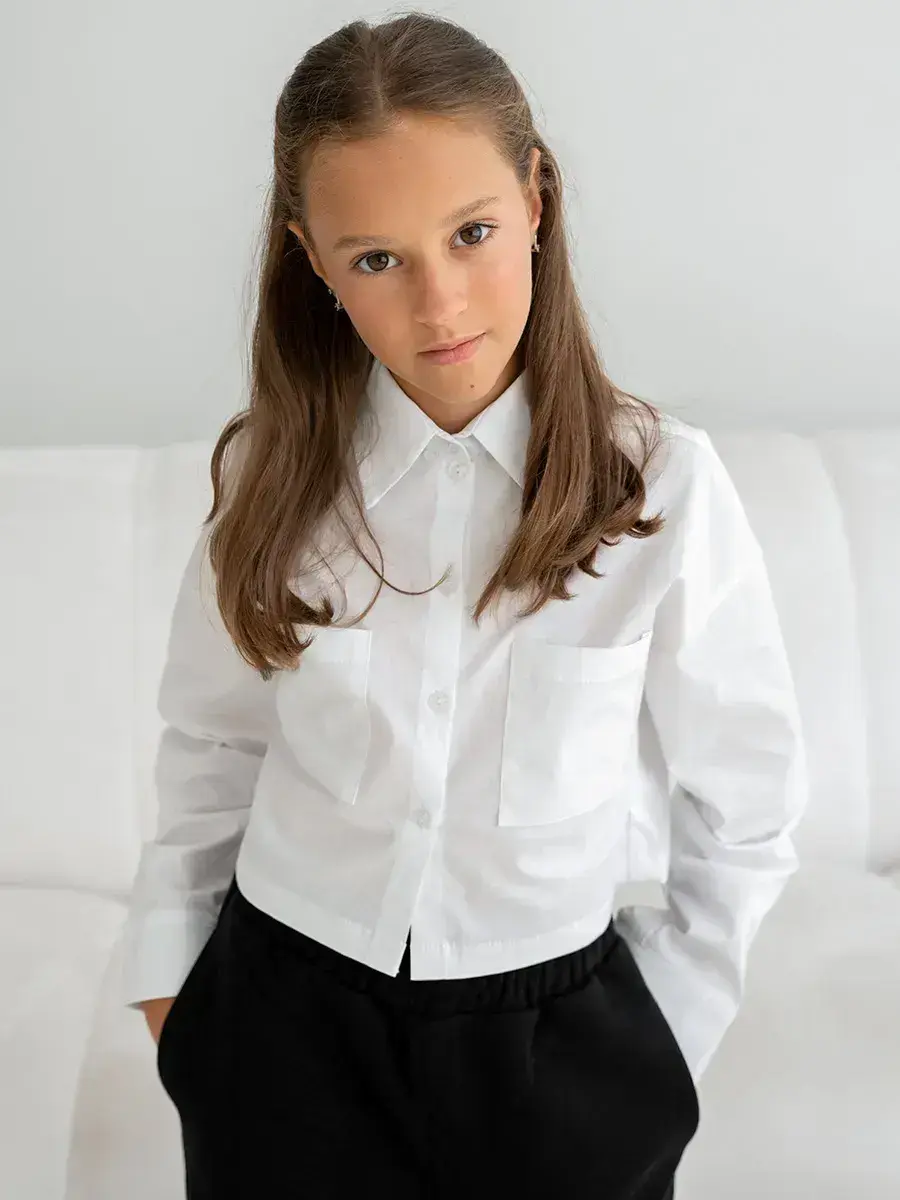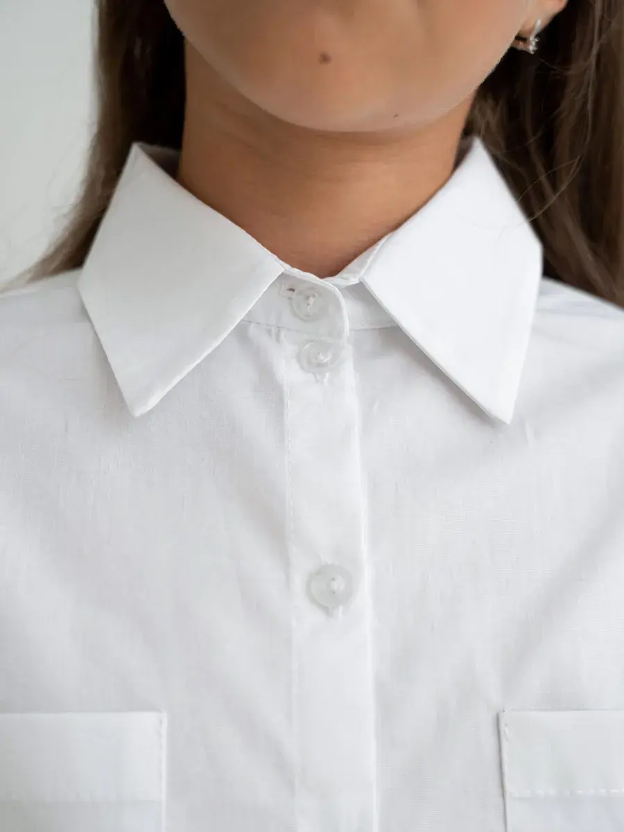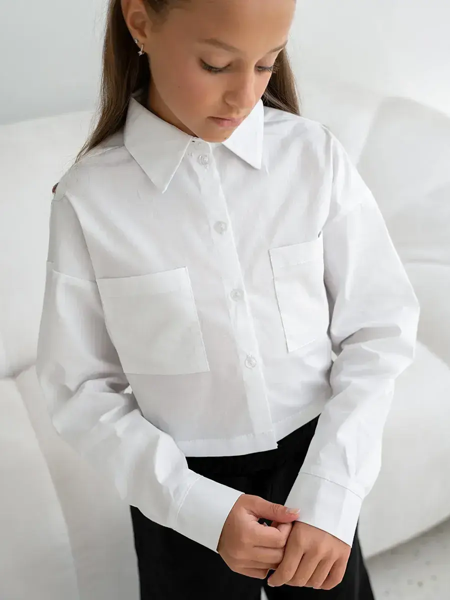 Представляем вашему вниманию уникальную укороченную детскую школьную рубашку, которая обязательно станет незаменимой частью гардероба вашей девочки. Эта изящная и стильная белая рубашка для девочки изготовлена в соответствии с высокими стандартами. Наша оверсайз блузка идеально подойдет для школы, ведь она выполнена в классическом стиле, как школьная форма , которая всегда выглядит безупречно и аккуратно. Благодаря своей белой расцветке, она придаст вашей девочке элегантный и аккуратный вид. Данная школьная рубашка для девочки с удлиненным рукавом добавит стиля для подростка. Модель укороченного покроя идеально подойдет к юбкам и брюкам как в повседневном гардеробе девочки и подростков. Подростковая школьная одежда должна быть не только удобной и практичной, но и стильной, поэтому мы уделяем большое внимание фасону и пошиву, а также новым тенденциям.
