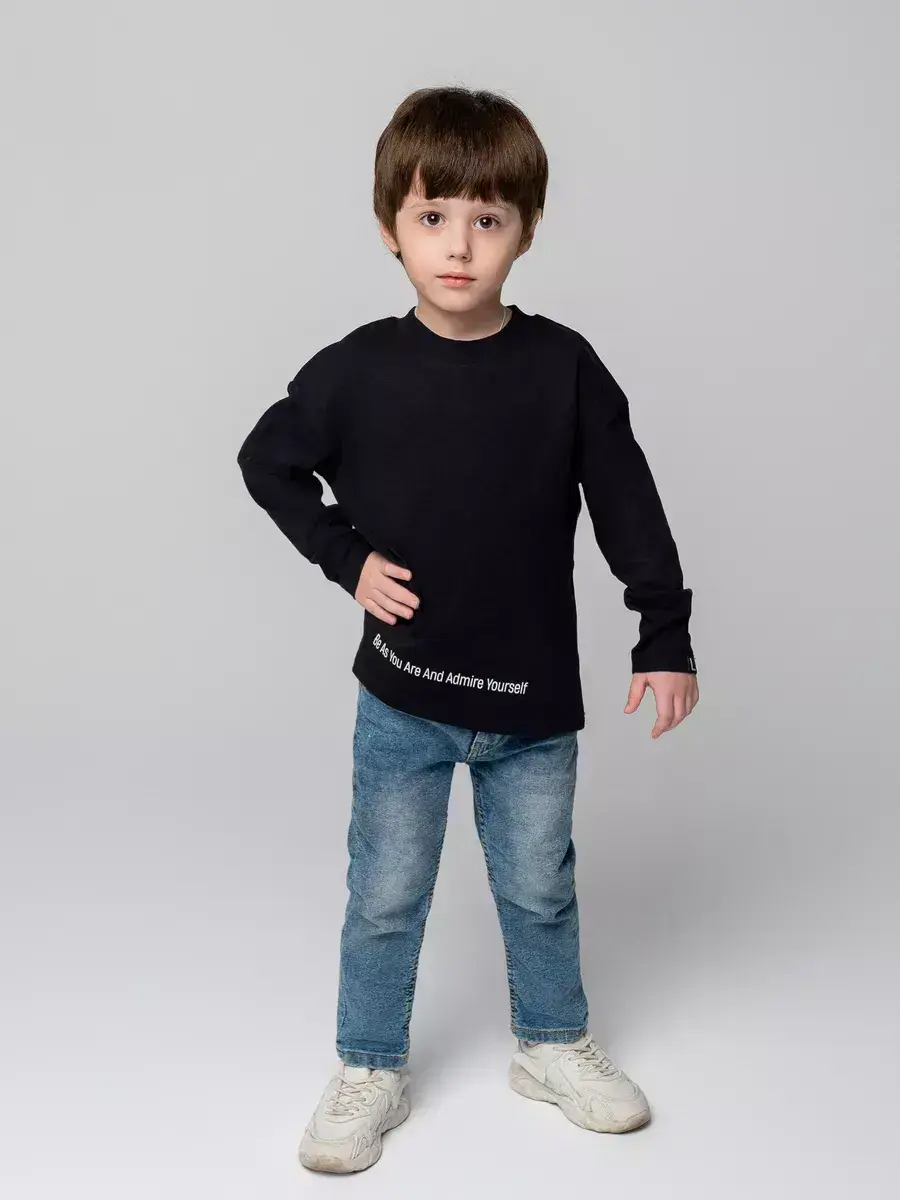 Модный трикотажный лонгслив - это незаменимая вещь в гардеробе юного модника. Однотонная футболка с длинным рукавом станет отличным выбором как для повседневной носки, так и для занятий спортом или школы. Уникальный принт и стильная надпись на одежде добавят ярких ноток в образ ребенка.