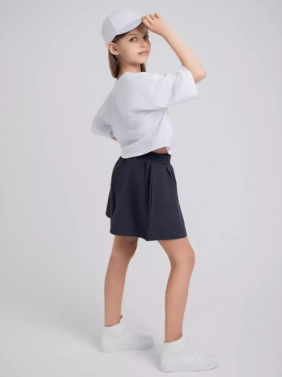 Познакомьтесь с идеальным сочетанием стиля и комфорта с нашими детскими спортивными трикотажными шортами-юбкой. Эти детские шорты созданы специально для активных девочек, которые хотят быть модными и при этом чувствовать себя комфортно в любой ситуации. Наши юбка-шорты для девочки — это лучшее из двух миров, объединяющее стиль юбки и удобство шорт.