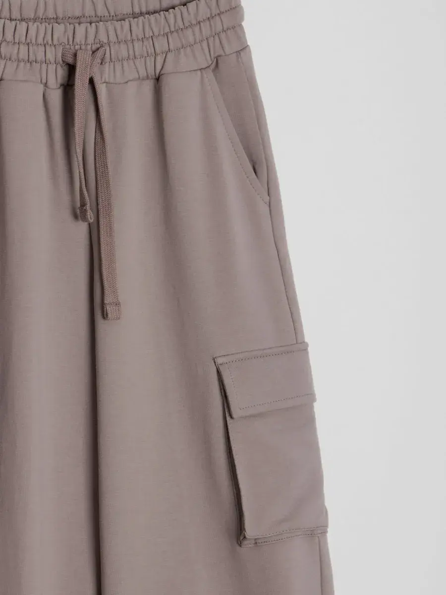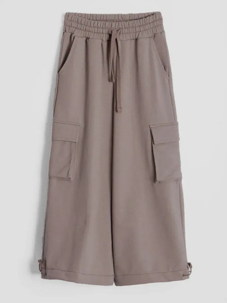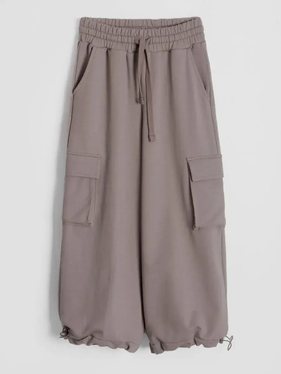 Эти детские карго шаровары оснащены удобной резинкой на талии, которая позволяет носить их на любой фигуре. Дополнительный элемент в виде затяжки помогает легко регулировать размер.