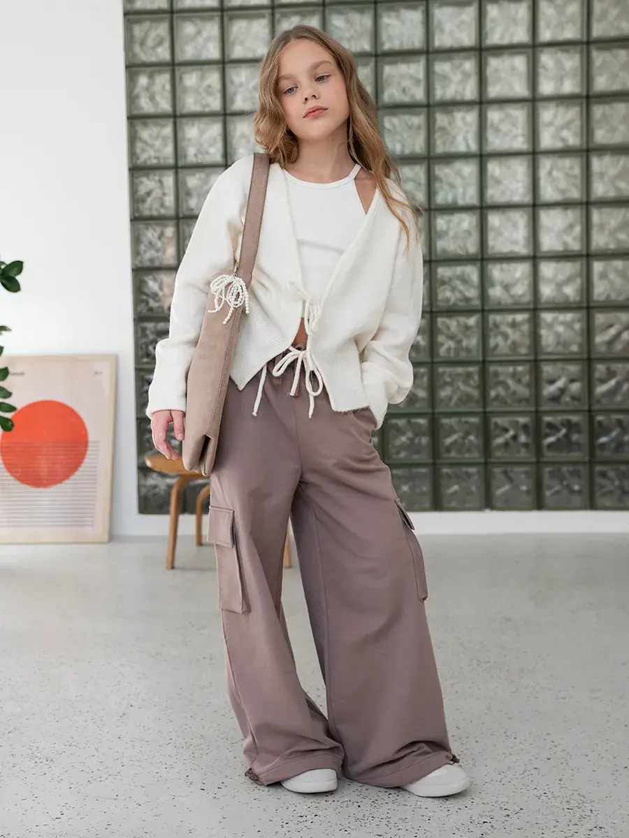 Бежевые брюки для девочек палаццо – это широкие штаны, которые стали незаменимым в гардеробе юной иконы стиля.Это -уникальная коллекция от LARETTO.