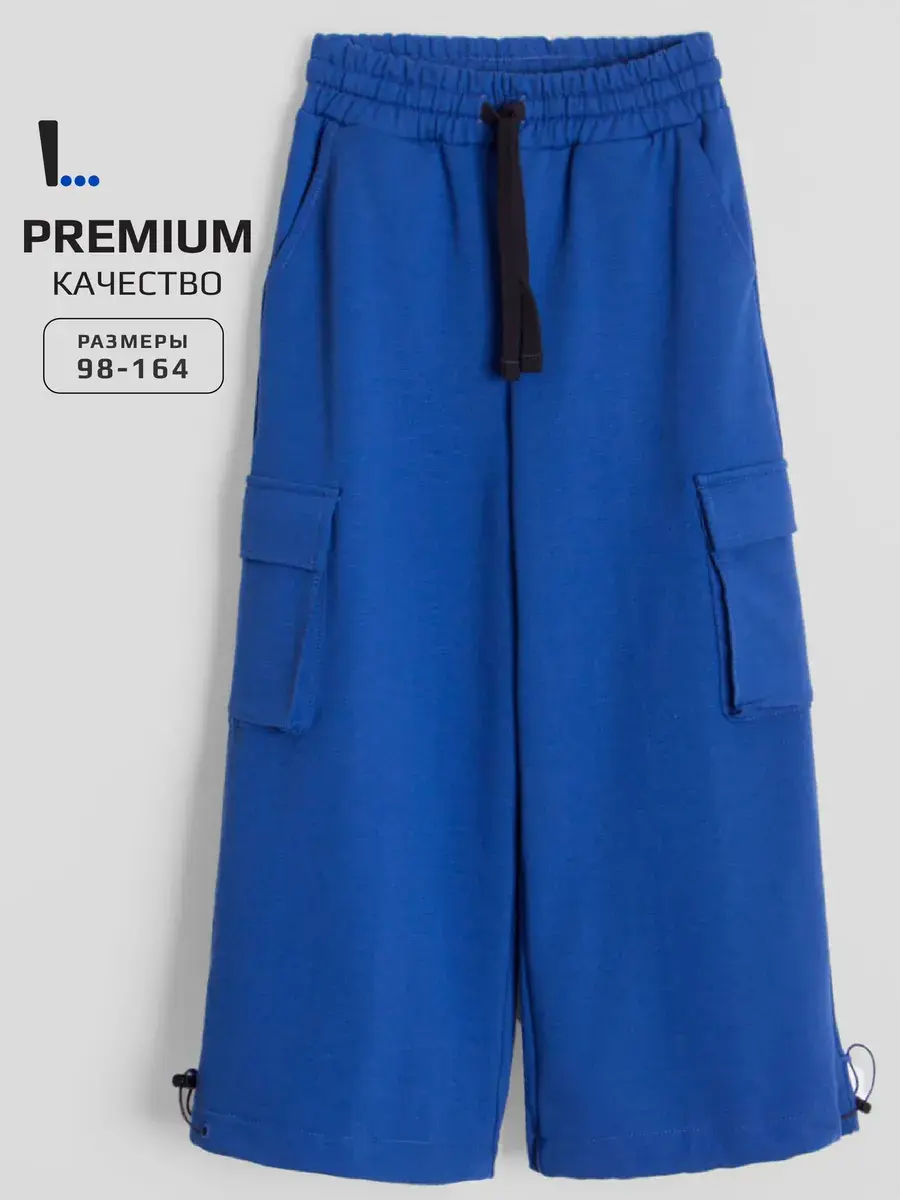 Синие брюки для девочек палаццо – это широкие штаны, которые стали незаменимым в гардеробе юной иконы стиля. Это -уникальная коллекция от LARETTO в стиле y2k для маленьких модниц.