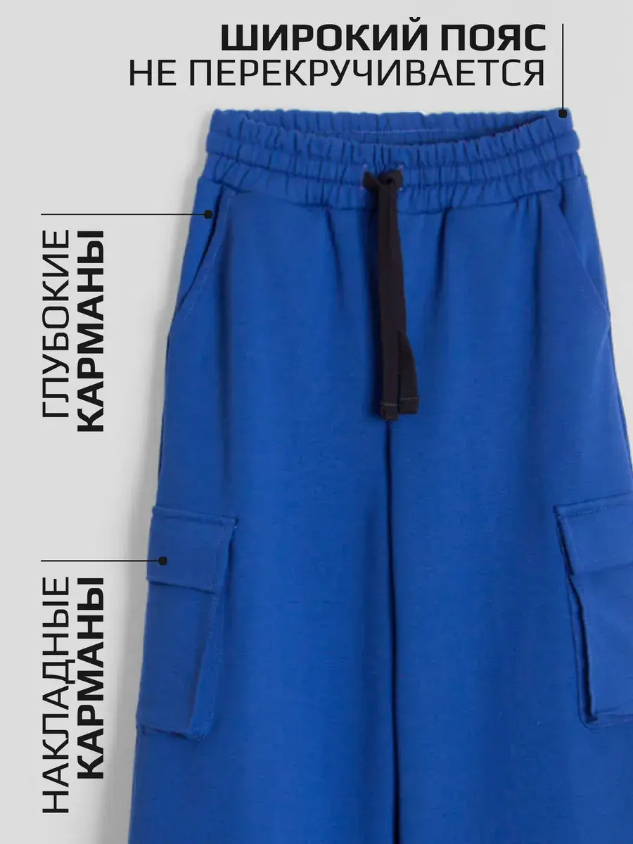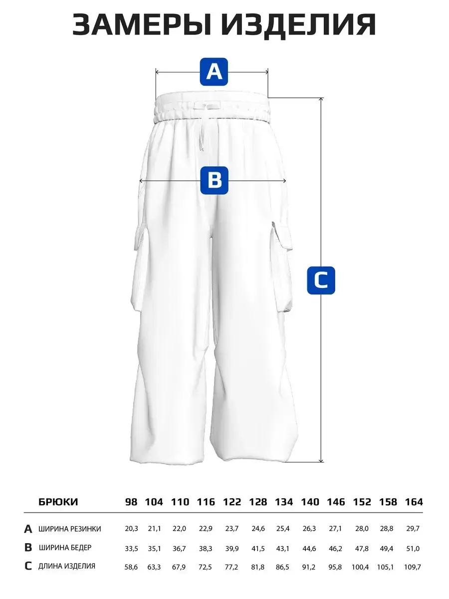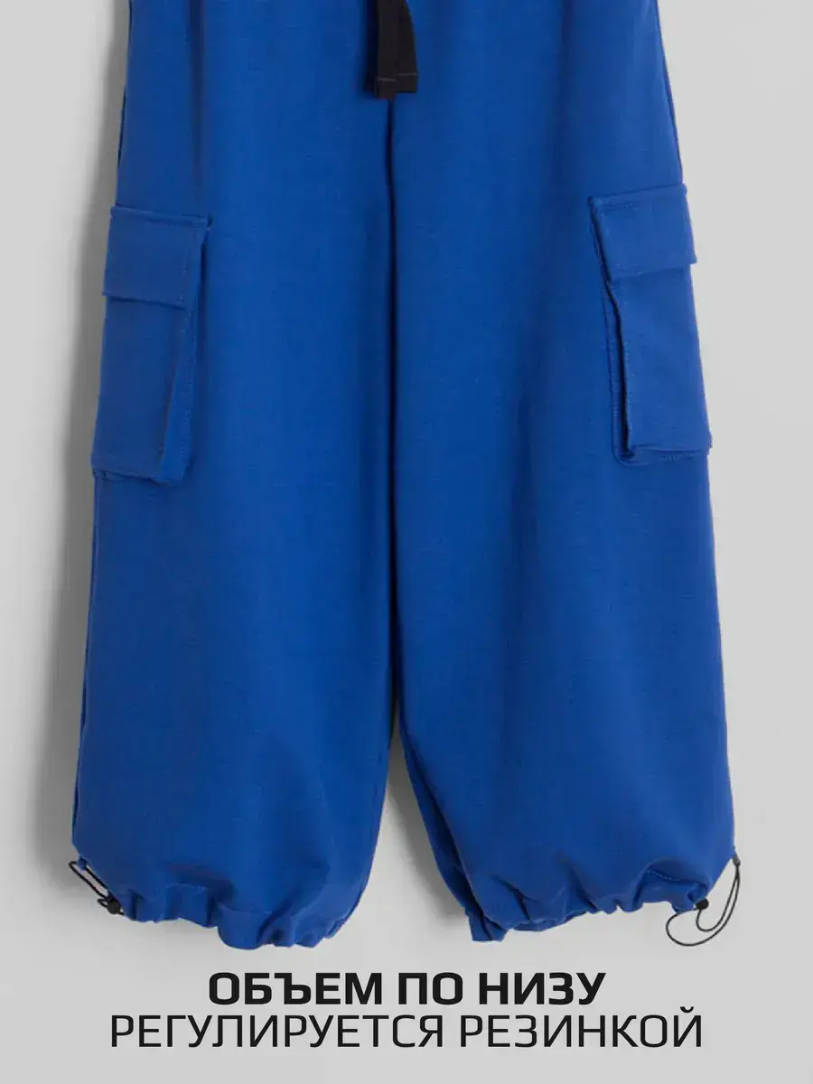 Эти детские карго шаровары оснащены удобной резинкой на талии, которая позволяет носить их на любой фигуре. Дополнительный элемент в виде затяжки помогает легко регулировать размер.