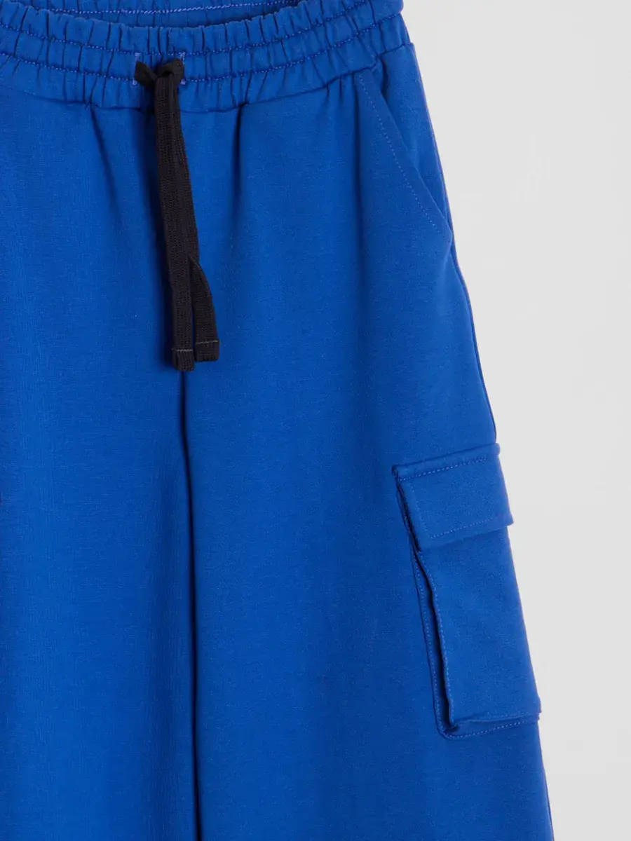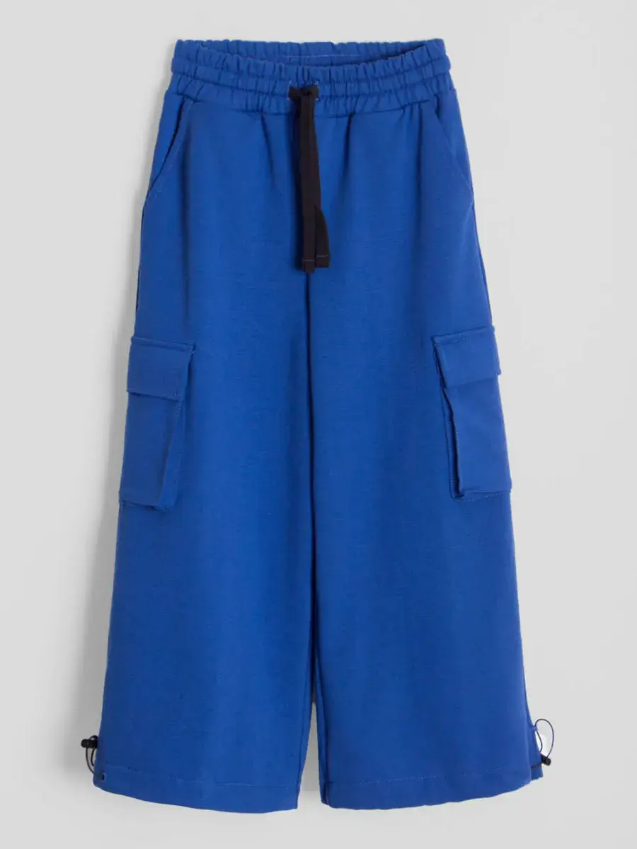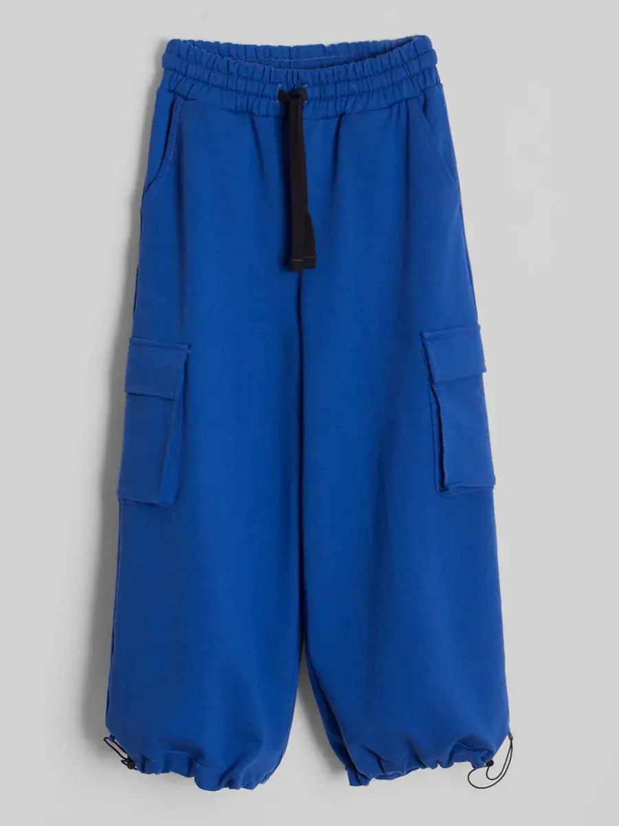 Эти детские карго шаровары оснащены удобной резинкой на талии, которая позволяет носить их на любой фигуре. Дополнительный элемент в виде затяжки помогает легко регулировать размер.