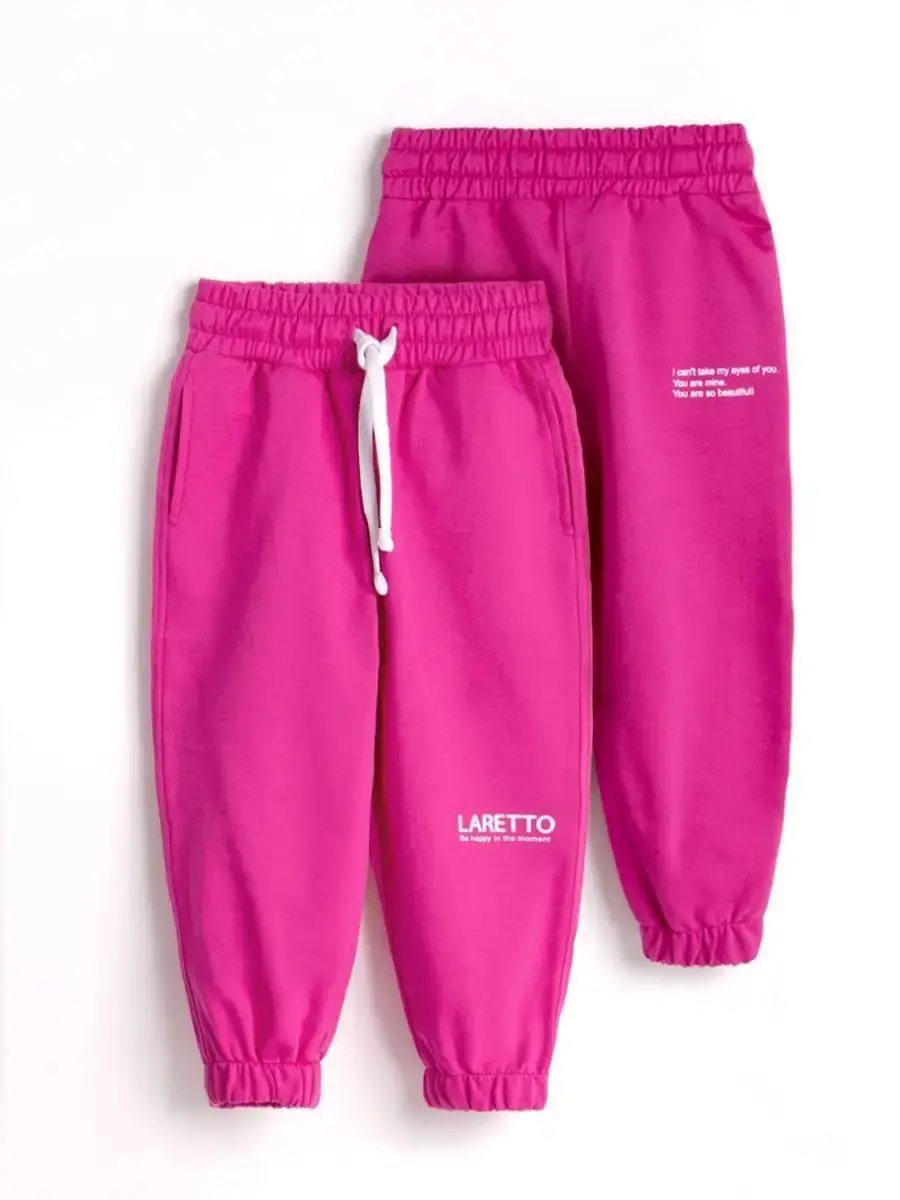 Брюки джоггеры для девочек - выполнены также из трикотажной ткани на основе натурального хлопка. Широкий пояс на резинке не сдавливает животик ребенка и обеспечивает надежную фиксацию на талии. Расширенные от бедра к низу придают образу оригинальность и следуют последним модным тенденциям.