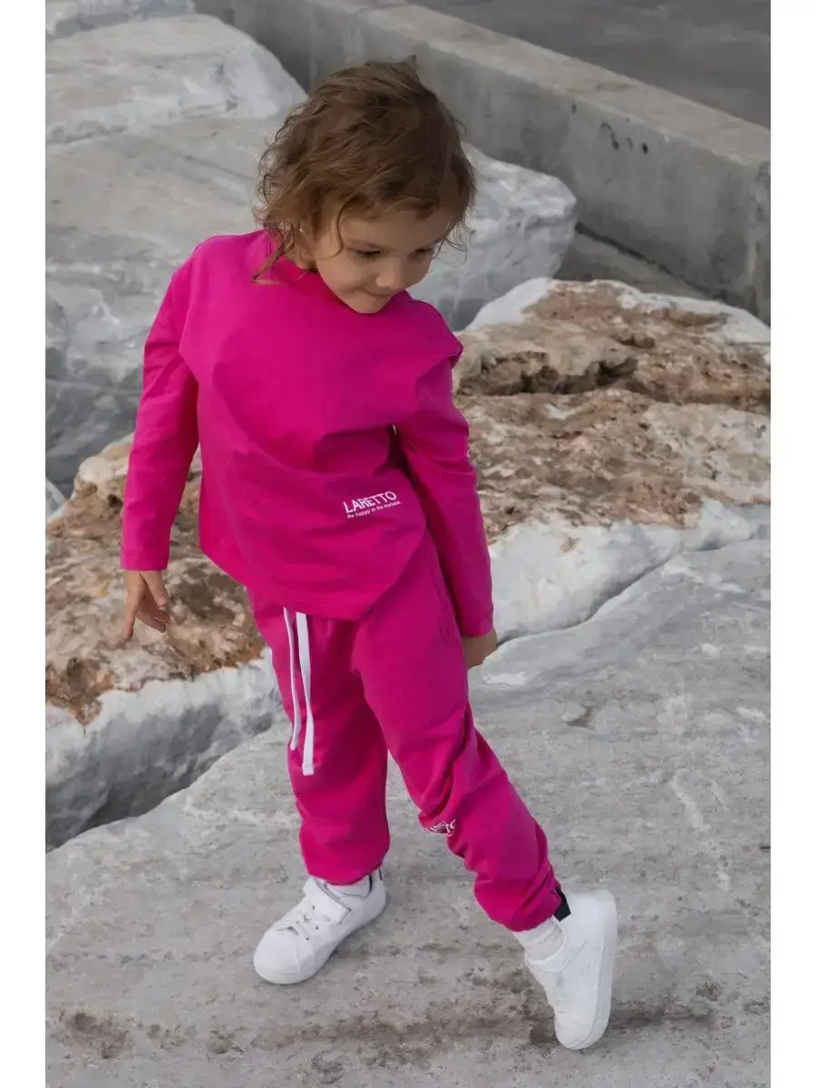 Спортивный костюм для девочек, который сочетает в себе стиль, комфорт и качество. Этот трикотажный детский костюм состоит из удобного лонгслива и модных брюк, которые подарят вашей малышке свободу движений в теплые весенние дни.