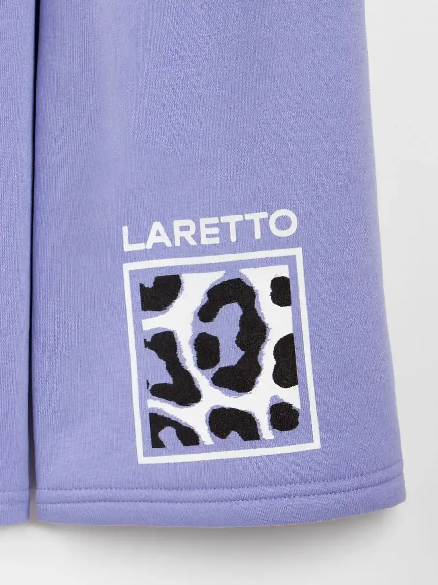 Брюки палаццо для девочек - выполнены также из трикотажной ткани на основе натурального хлопка. Широкий пояс на резинке не сдавливает животик ребенка и обеспечивает надежную фиксацию на талии. Расширенные от бедра к низу придают образу оригинальность и следуют последним модным тенденциям.