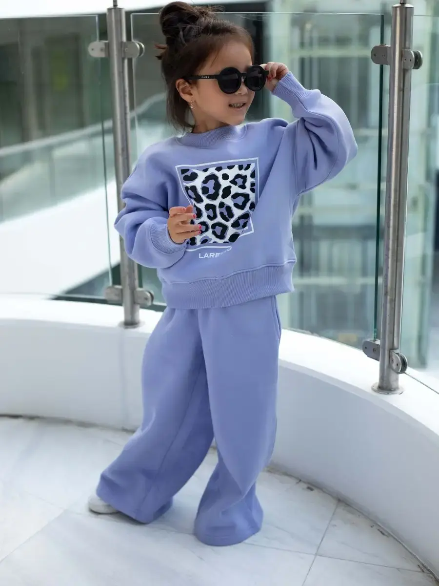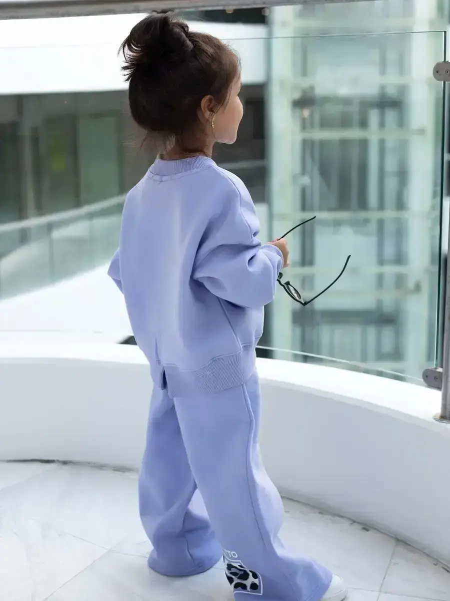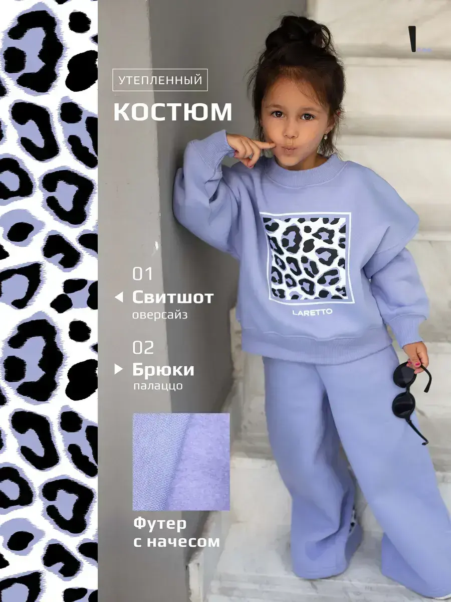 Осенний спортивный костюм для девочек— идеальное сочетание стиля и комфорта. Детский костюм состоит из уютного детского свитшота оверсайз и брюк-палаццо на резинке. Каждый элемент детского костюма для девочек создан с заботой о маленьких модницах, предпочитающих активный образ жизни.