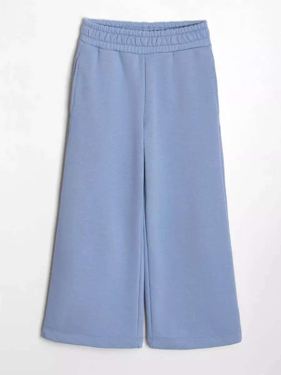 Брюки палаццо для девочек - выполнены также из трикотажной ткани на основе натурального хлопка. Широкий пояс на резинке не сдавливает животик ребенка и обеспечивает надежную фиксацию на талии. Расширенные от бедра к низу придают образу оригинальность и следуют последним модным тенденциям.