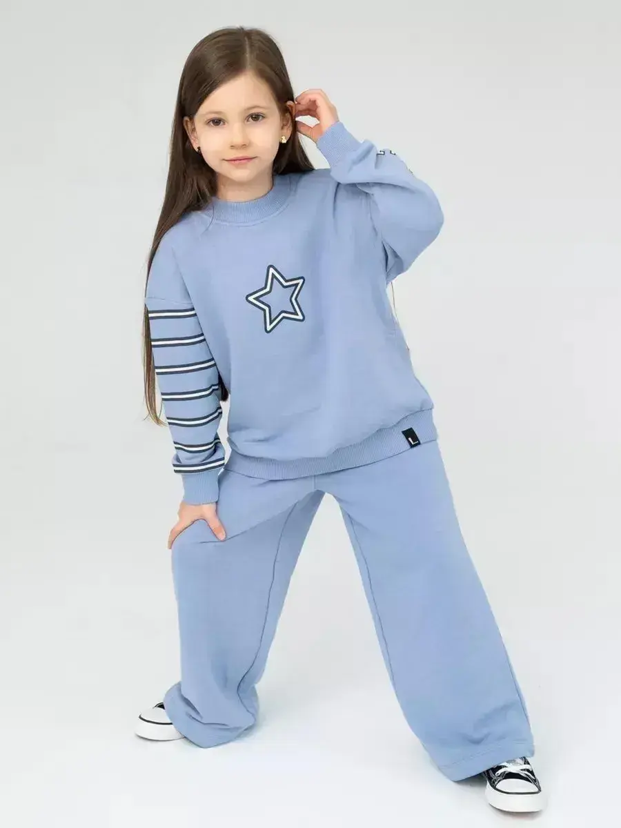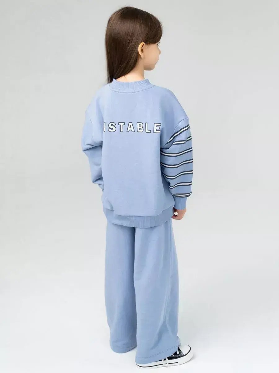 Костюм для девочки — идеальное сочетание стиля и комфорта. Детский костюм состоит из уютного детского свитшота оверсайз и брюк-палаццо на резинке. Каждый элемент детского костюма для девочек создан с заботой о маленьких модницах, предпочитающих активный образ жизни.