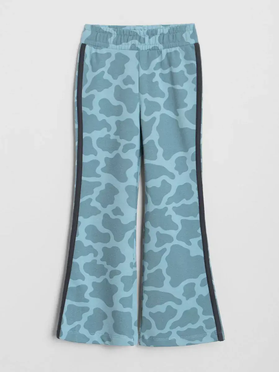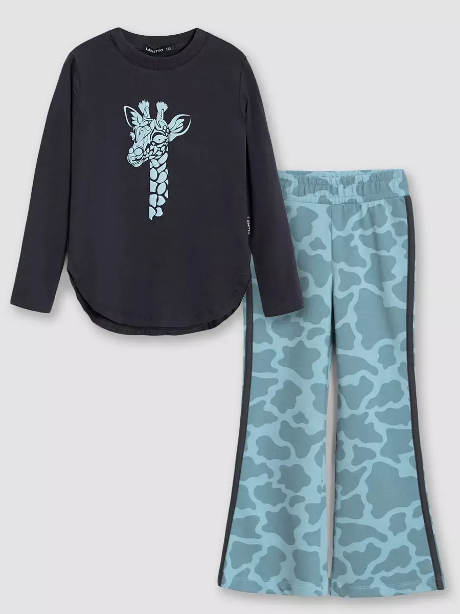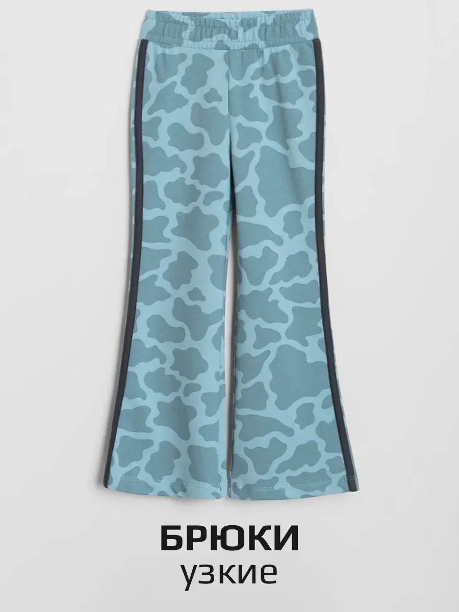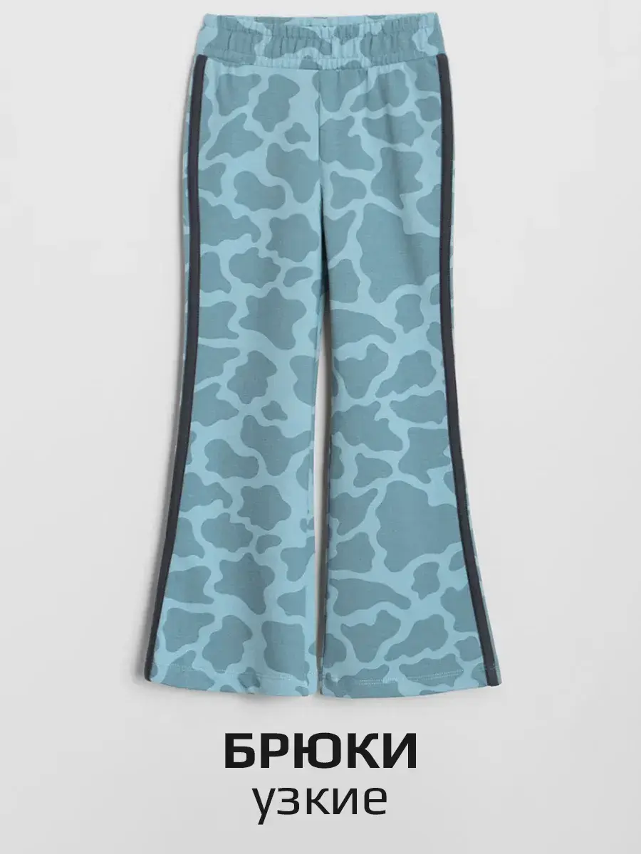 Брюки клеш для девочек - выполнены также из трикотажной ткани на основе натурального хлопка. Широкий пояс на резинке не сдавливает животик ребенка и обеспечивает надежную фиксацию на талии. Расширенные от колена к низу брючины придают образу оригинальность и следуют последним модным тенденциям.