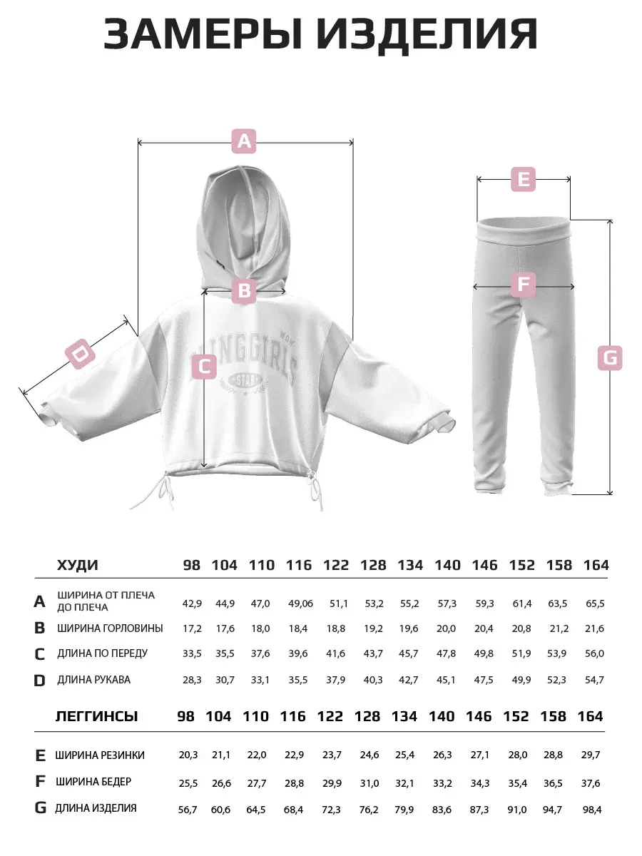 Худи для девочки: Изготовлено из высококачественного материала, который обеспечивает тепло в прохладную погоду. Модель с капюшоном защитит от ветра, а удобные завязки позволят регулировать его размер. Стильное худи украшено ярким принтом или логотипом, добавляя игривости в образ. Леггинсы для девочки на эластичной резинке гарантируют комфорт при носке весь день. Легкая ткань делает их подходящими как для осенней погоды, так и для прохладных летних вечеров.