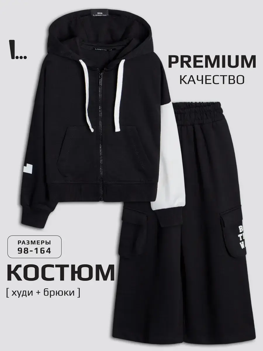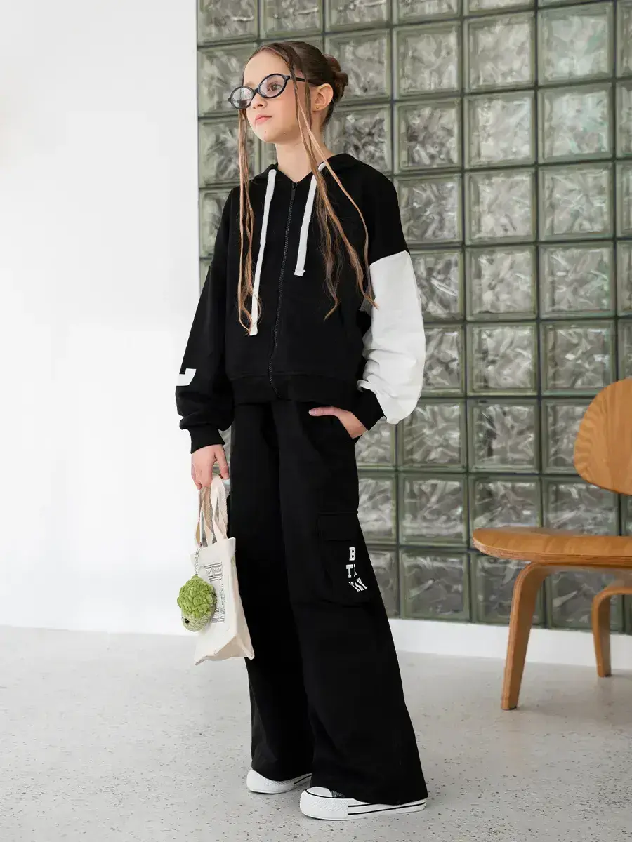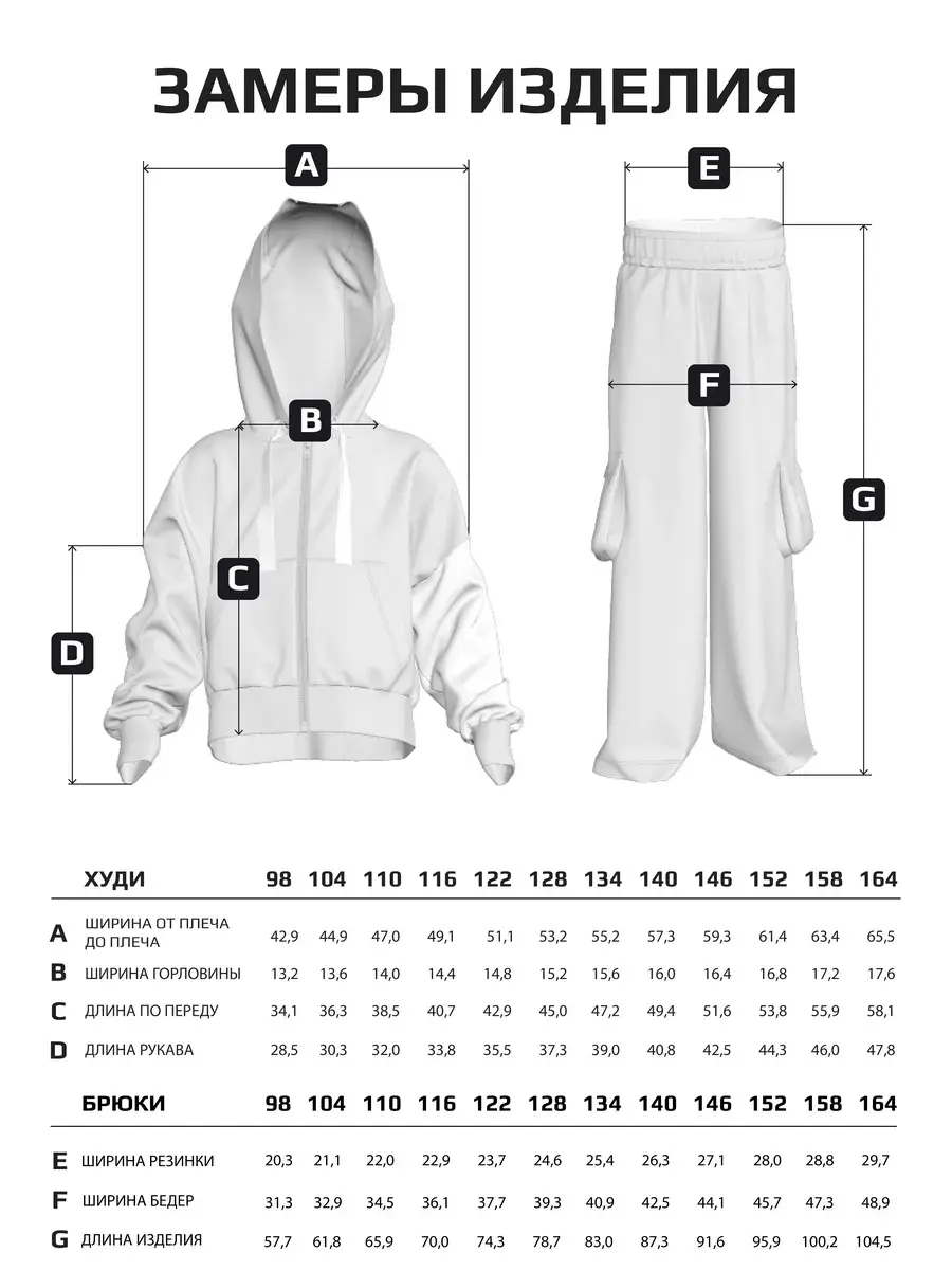 Стильный и современный спортивный костюм для девочек. Состоит из уютного худи и модных брюк палаццо. Этот комплект идеально сочетает в себе комфорт и актуальные тренды, что делает его отличным выбором для активных дней, прогулок и отдыха.