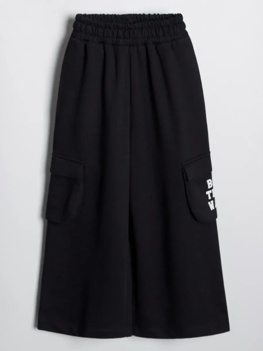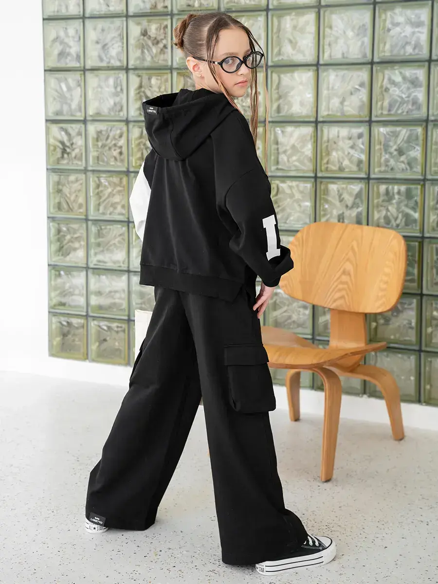 Брюки палаццо имеют широкий крой, который свободно облегает ноги и создает эффект легкости и воздушности. Карго для девочки выполнены из того же мягкого материала, что и свитшот, что гарантирует комфорт при носке. Высокая талия и эластичный пояс обеспечивают идеальную посадку и возможность регулировки, что делает брюки удобными для девочек подростков.