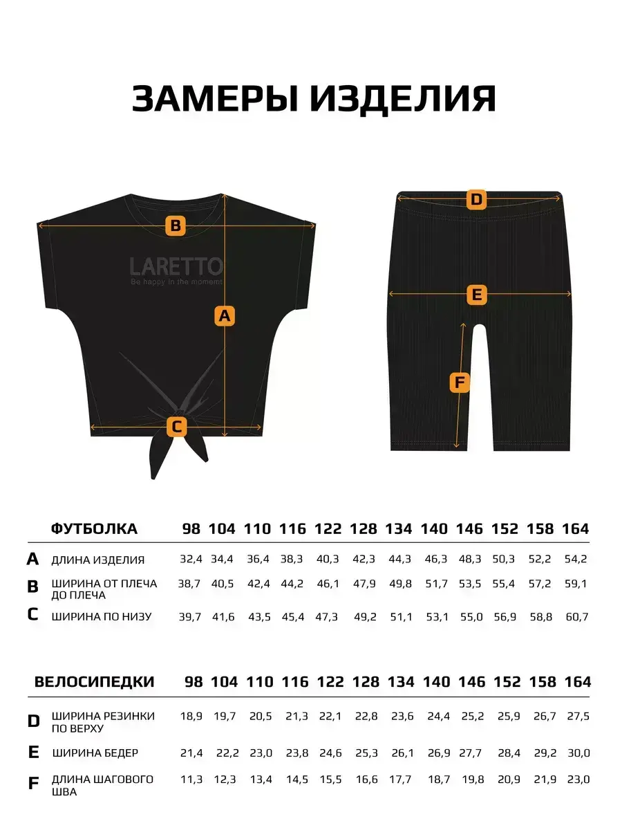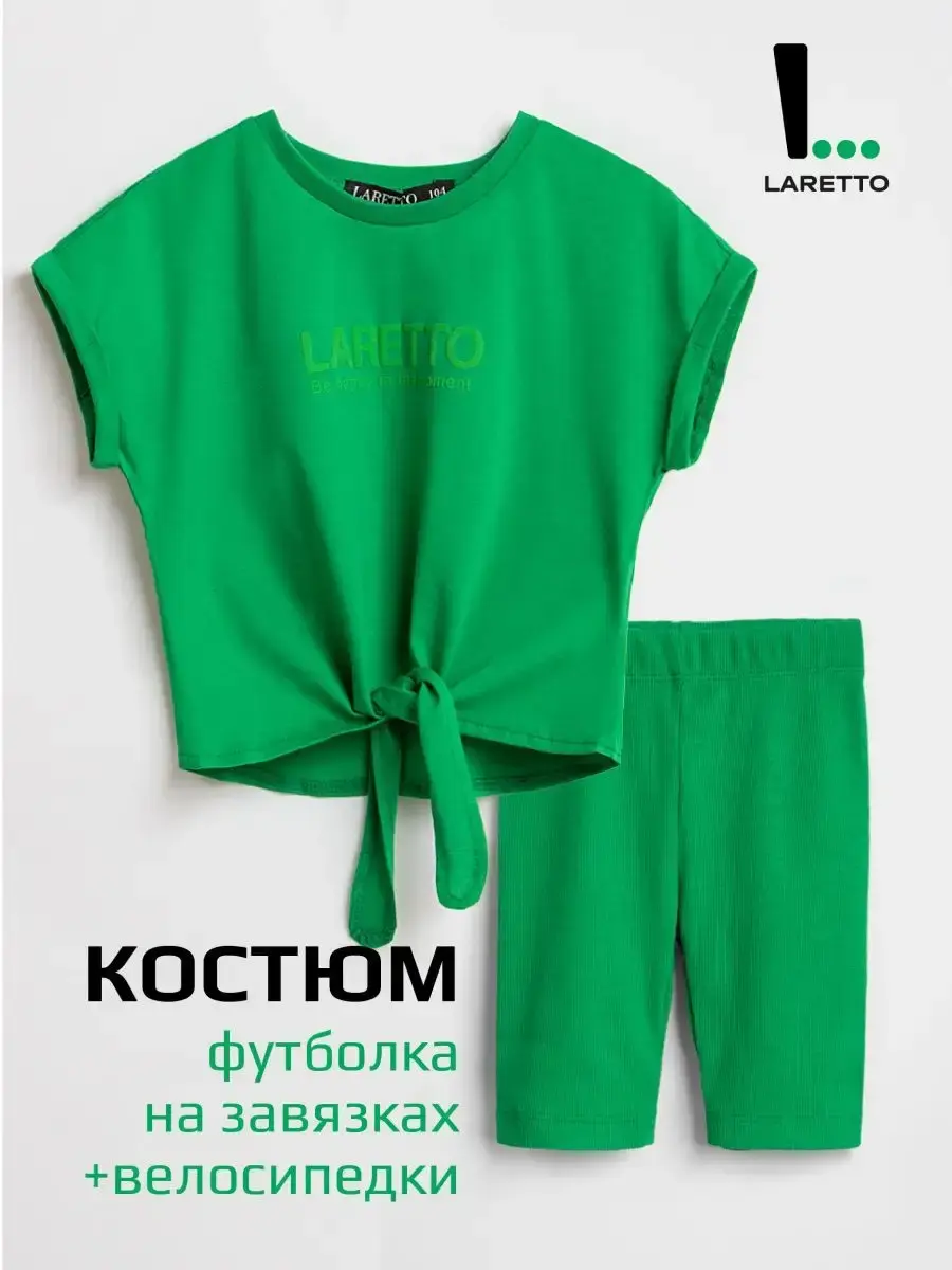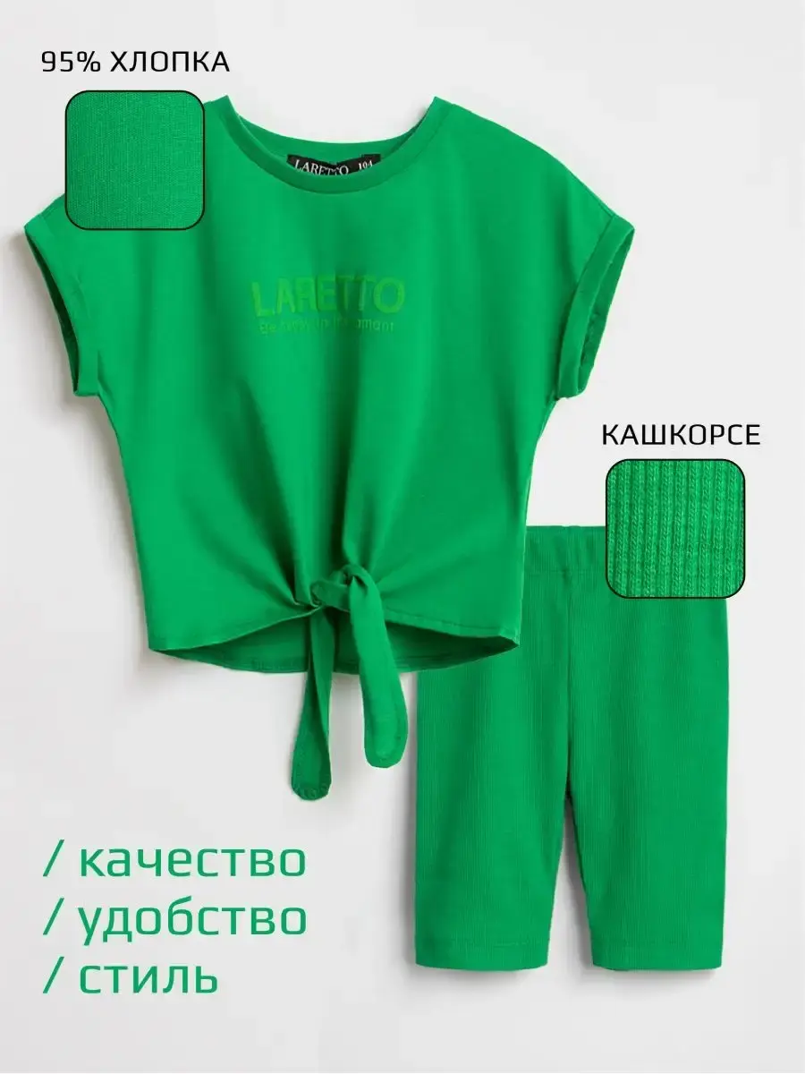 Костюм для девочки летний - это идеальный вариант для дома и отдыха. Футболка с завязками и велосипедки станут самым практичным повседневным вариантом. Шорты детские в рубчик выполнены из Премиального трикотажа кашкорсе, что обеспечивает приятный комфорт для кожи ребенка. Они отлично подойдут для занятий физкультурой, гимнастикой, танцами или бегом. Благодаря широкой палитре цветов комплект легко впишется в гардероб каждой модницы. Топ с завязками и велосипедки выглядят стильно не только во время занятий спортом, но и на прогулке. Идеальный крой и качественное исполнение в сочетании с большим размерным рядом позволит подобрать модель не только для малышей, но и для подростков. Одежда для девочек не сковывает движений и подойдет для дома и отдыха. Спортивные шортики создают красивый силуэт, подчеркивают талию, а широкая резинка не оставляет следов на коже. Укороченная футболка с минималистичным принтом - хит этого сезона! Детский трикотажный костюм из нашей коллекции - это качественная детская вещь, которая прослужит не один сезон. Он станет чудесным подарком для дочери, племянницы, сестры, внучки, подруги на любой праздник и без повода. Порадуйте своего ребенка качественной одеждой от бренда LARETTO! Приятных Вам покупок!