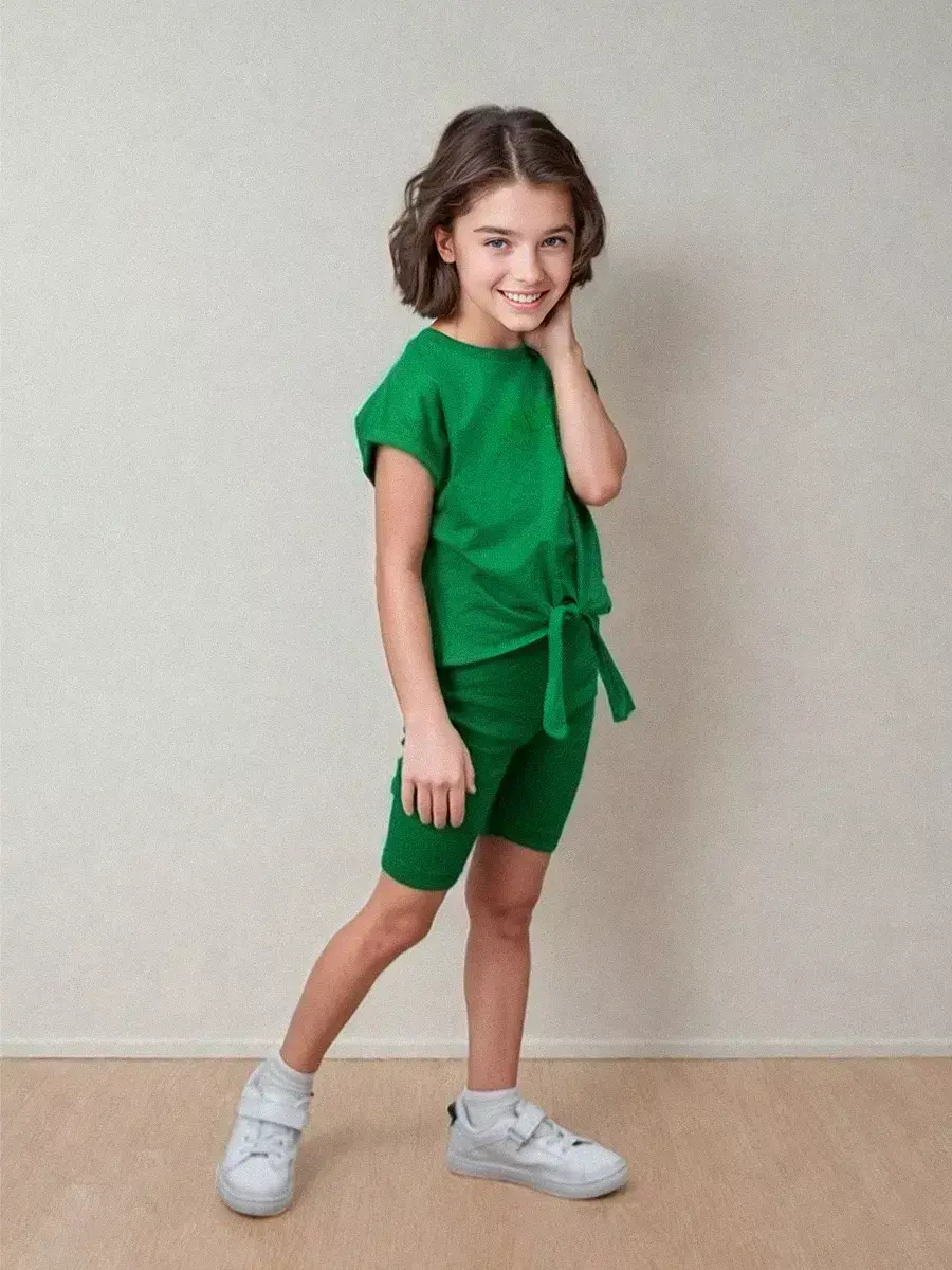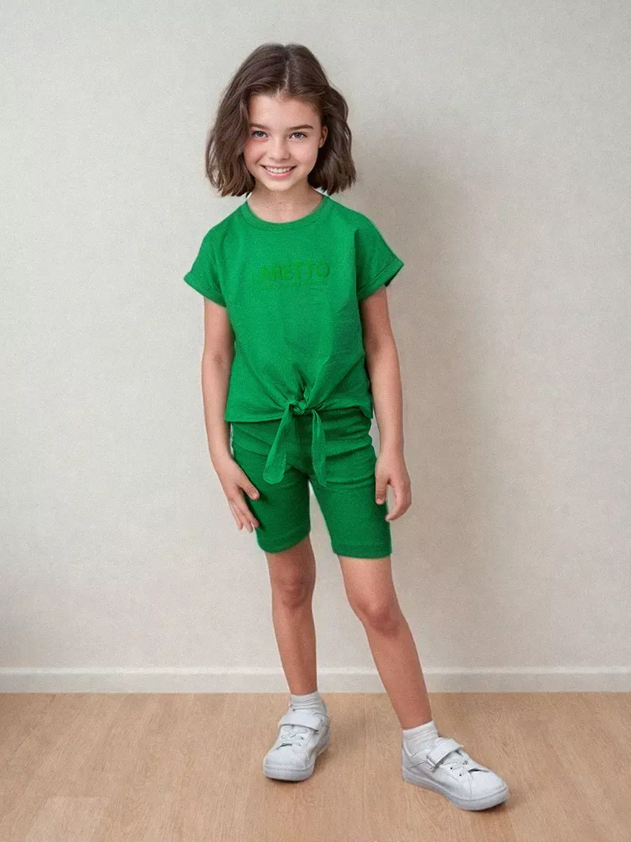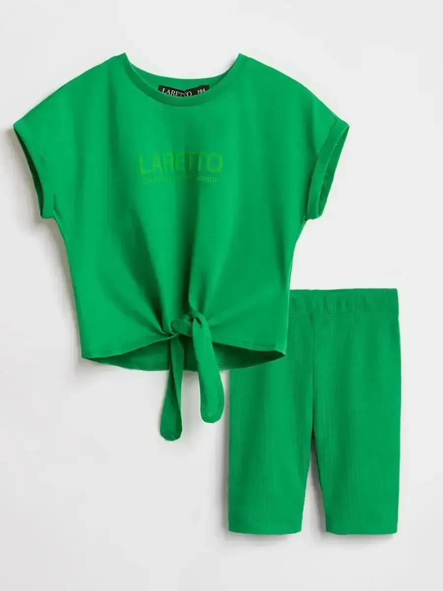 Костюм для девочки летний - это идеальный вариант для дома и отдыха. Футболка с завязками и велосипедки станут самым практичным повседневным вариантом. Шорты детские в рубчик выполнены из Премиального трикотажа кашкорсе, что обеспечивает приятный комфорт для кожи ребенка. Они отлично подойдут для занятий физкультурой, гимнастикой, танцами или бегом. Благодаря широкой палитре цветов комплект легко впишется в гардероб каждой модницы. Топ с завязками и велосипедки выглядят стильно не только во время занятий спортом, но и на прогулке. Идеальный крой и качественное исполнение в сочетании с большим размерным рядом позволит подобрать модель не только для малышей, но и для подростков. Одежда для девочек не сковывает движений и подойдет для дома и отдыха. Спортивные шортики создают красивый силуэт, подчеркивают талию, а широкая резинка не оставляет следов на коже. Укороченная футболка с минималистичным принтом - хит этого сезона! Детский трикотажный костюм из нашей коллекции - это качественная детская вещь, которая прослужит не один сезон. Он станет чудесным подарком для дочери, племянницы, сестры, внучки, подруги на любой праздник и без повода. Порадуйте своего ребенка качественной одеждой от бренда LARETTO! Приятных Вам покупок!