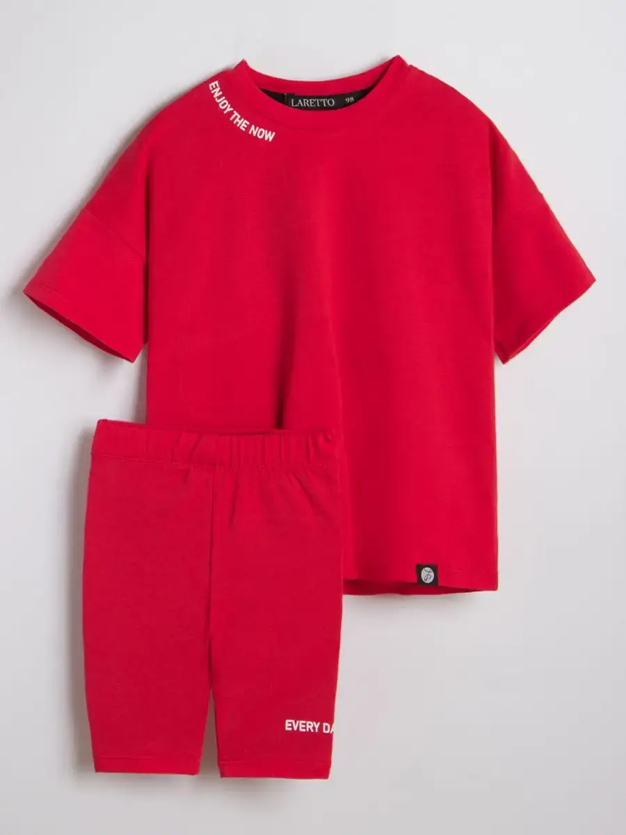 Костюм для девочки летний - это отличный выбор для жаркой погоды на каждый день! Созданный с учетом комфорта и стиля костюм детский предназначен для того, чтобы ваш ребенок чувствовал себя комфортно и выглядел модно. Шорты из мягкой и дышащей ткани идеально сидят по фигуре. Они имеют эластичный пояс, позволяя вашему ребенку свободно двигаться и играть без каких-либо ограничений. Велосипедки для девочки выполнены в классическом стиле, без боковых карманов, что добавляет нотку практичности. В сочетании с шортиками идет яркая и спортивная футболка с надписью, изготовленная из высококачественного хлопка с небольшим добавлением эластана. Летний костюм для девочки имеет неброский принт, что позволяет с легкостью комбинировать верх и низ с другими вещами. Широкий размерный ряд комплекта подойдет как малышу, так подростку, а разнообразная цветовая гамма придется по вкусу даже самому привередливому ребенку. Оденьте своего ребенка на семейное торжество, вечеринку по случаю дня рождения или любое другое мероприятие, где он сможет продемонстрировать свой уникальный стиль и индивидуальность. Удобная и стильная одежда для девочки из бриджей и футболки обязательно должна быть в гардеробе любого юного искателя приключений. Костюм для девочки сочетает в себе практичность и моду, помогая вашему ребенку чувствовать себя уверенно, сохраняя чувство индивидуальности!
