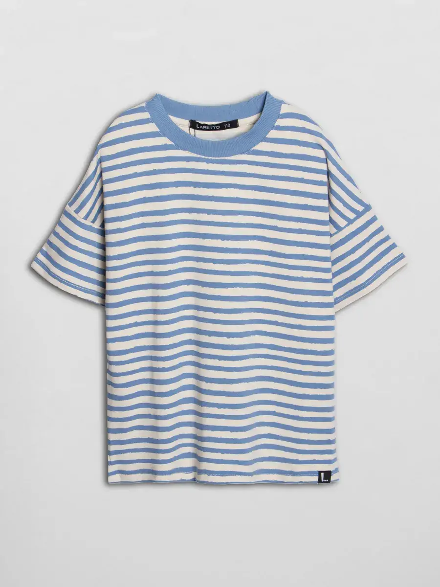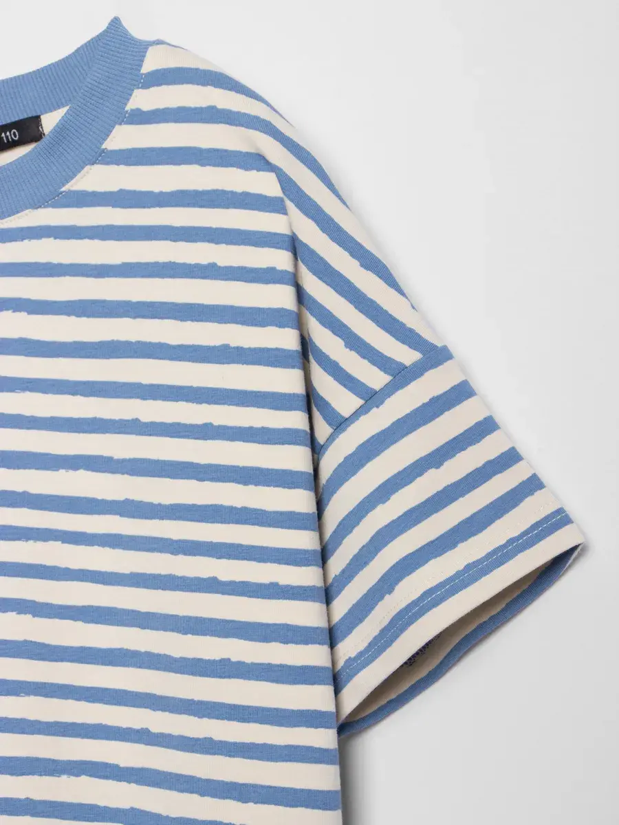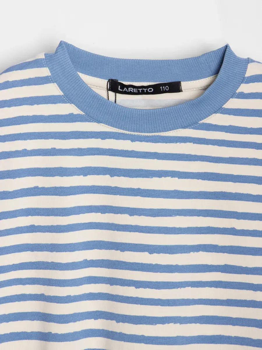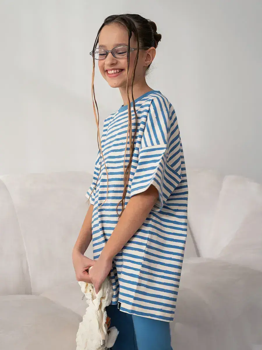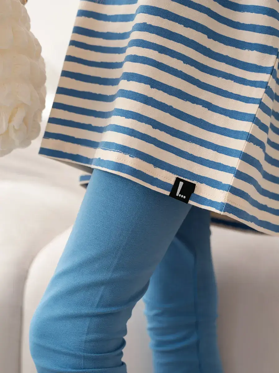 Комплект из футболки и лосин подходит детям и подросткам. Эта одежда станет отличным выбором для маленьких модниц. Яркая футболка с принтом "тельняшка" привлекает внимание и создает стильный образ. Леггинсы идеально дополняют наряд. Они предлагают комфорт в повседневной носке для девочки.
