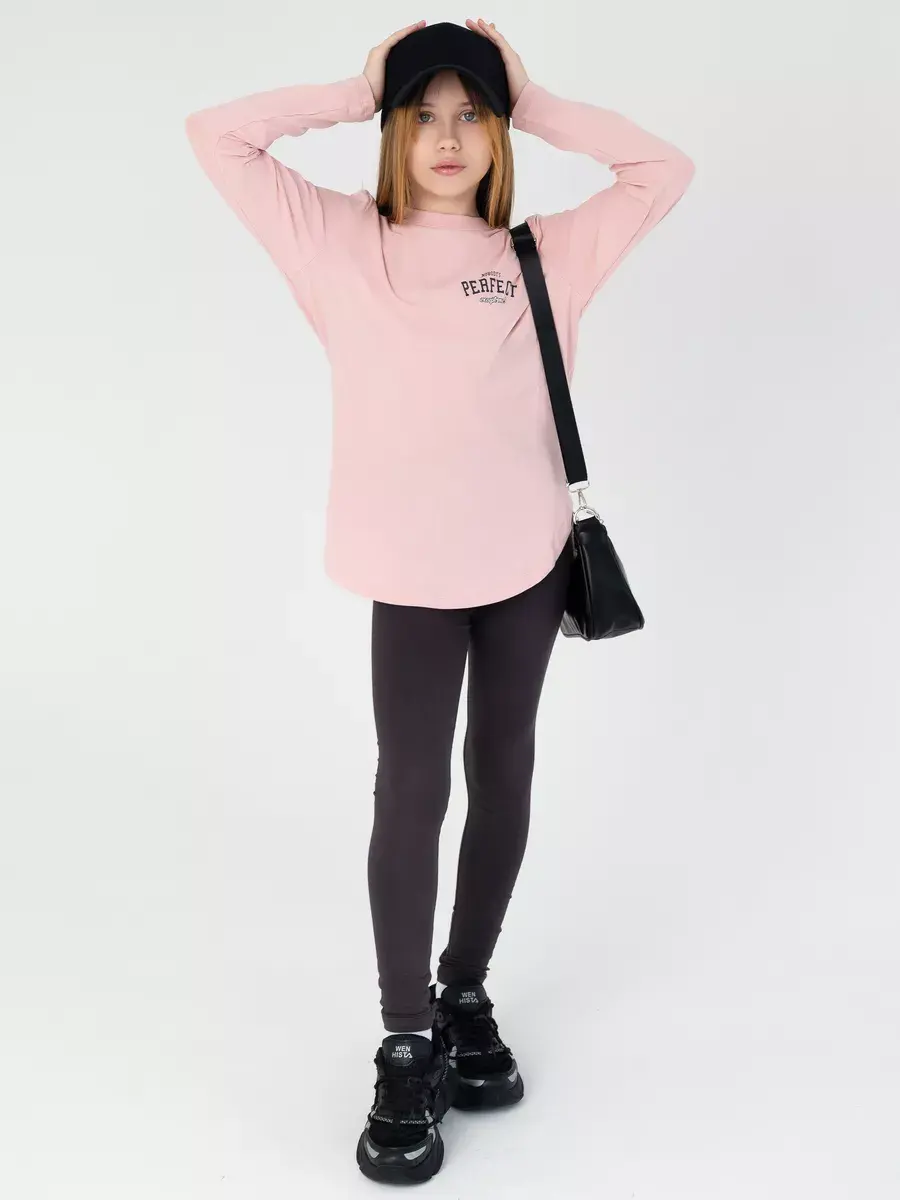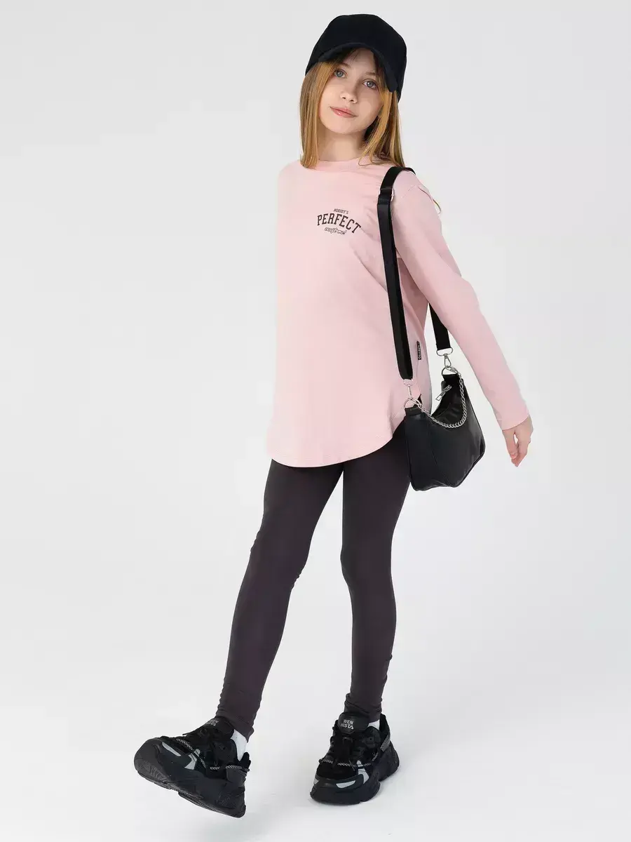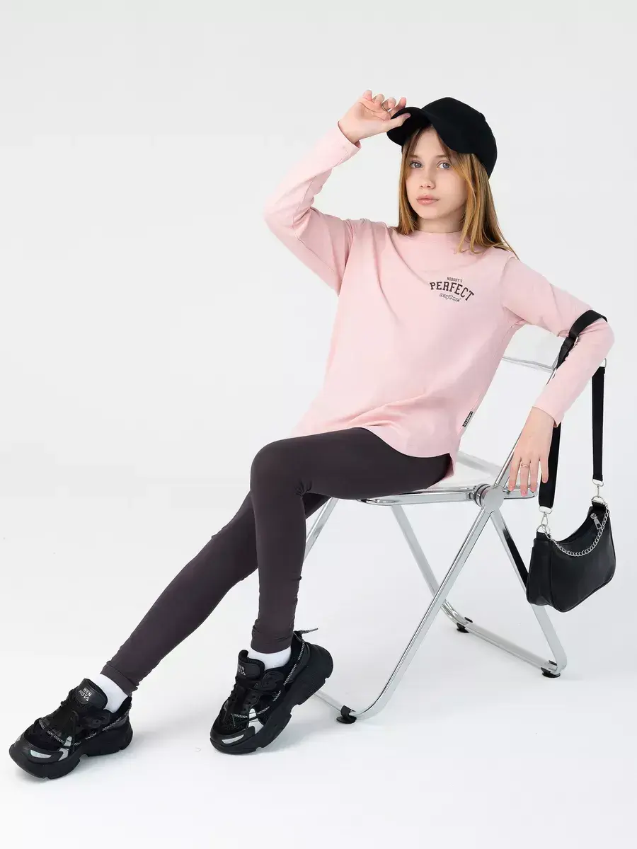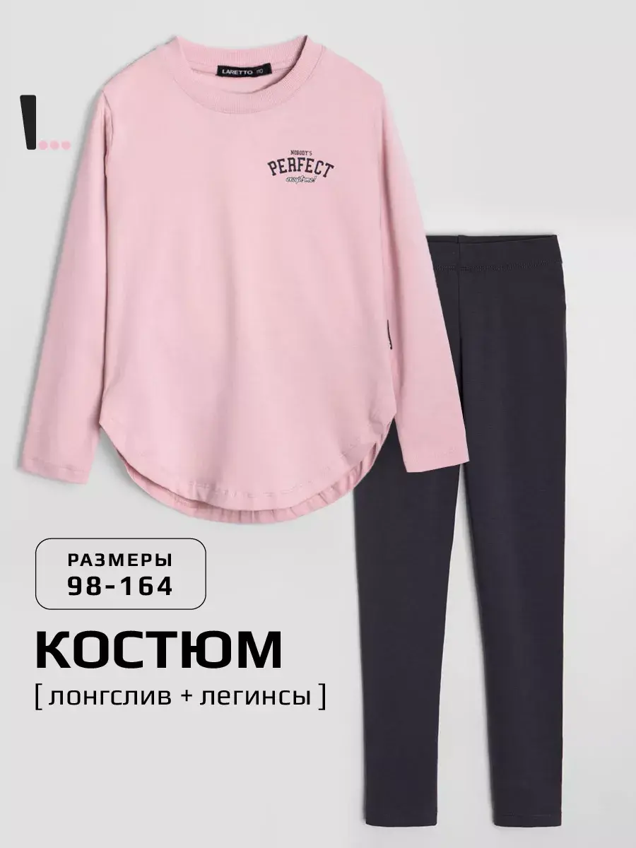 Спортивный костюм для девочек, который сочетает в себе стиль, комфорт и качество. Этот трикотажный детский костюм состоит из удобного лонгслива и модных леггинсов, которые подарят вашей малышке свободу движений в прохладные осенние дни.