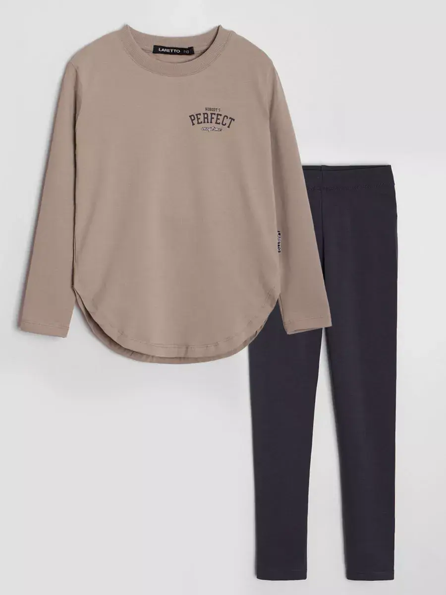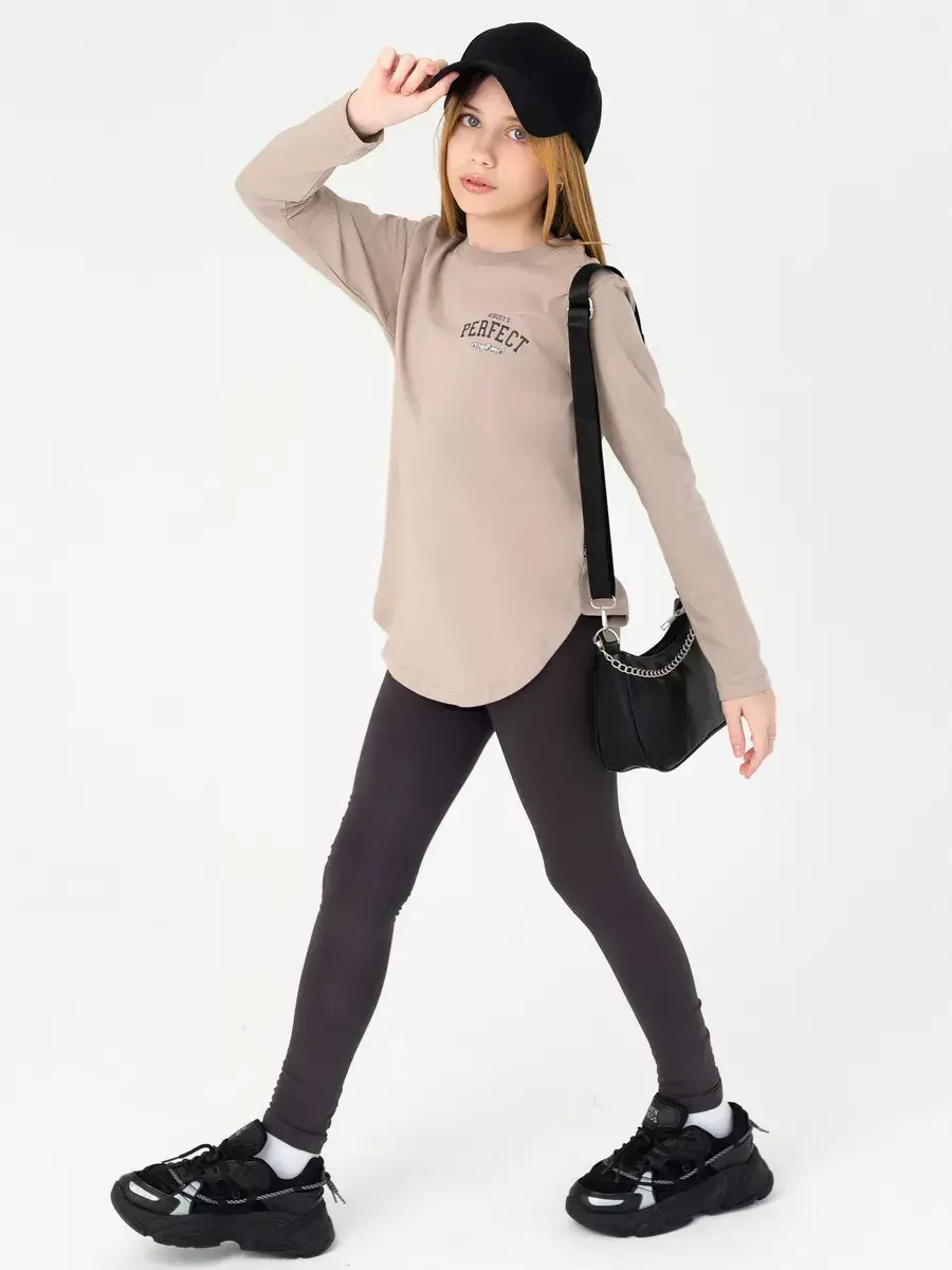 Спортивный костюм для девочек, который сочетает в себе стиль, комфорт и качество. Этот трикотажный детский костюм состоит из удобного лонгслива и модных леггинсов, которые подарят вашей малышке свободу движений в прохладные осенние дни.
