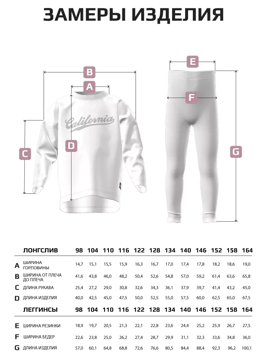 Лонгслив и леггинсы для девочки выполнены из трикотажа Премиум качества, благодаря чему вещи обладают хорошей износостойкостью, очень мягкие и комфортные в носке. Футболка детская с длинным рукавом в сочетании с лосинами для девочек создает ультрамодный look, который придется по вкусу даже подростку.