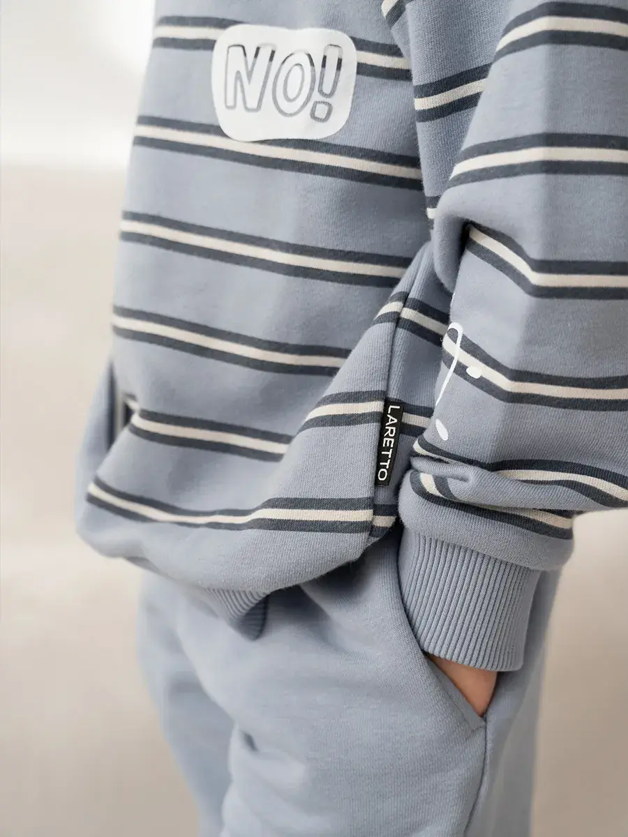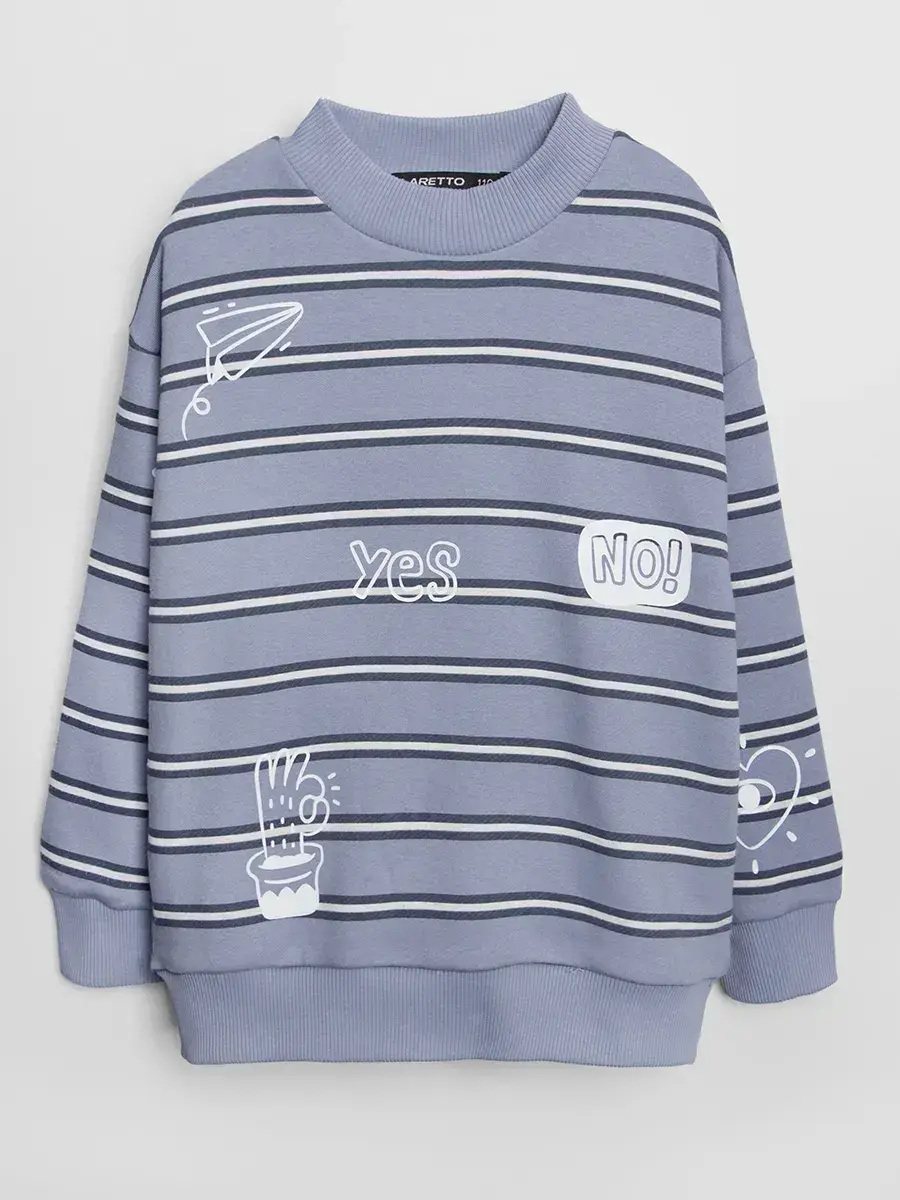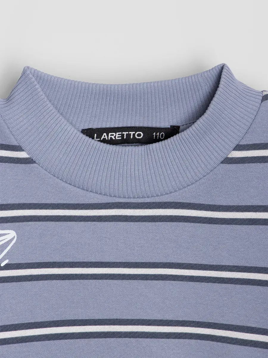 Свитшот в полоску для девочки будет актуален для создания как повседневных, так и спортивных образов.