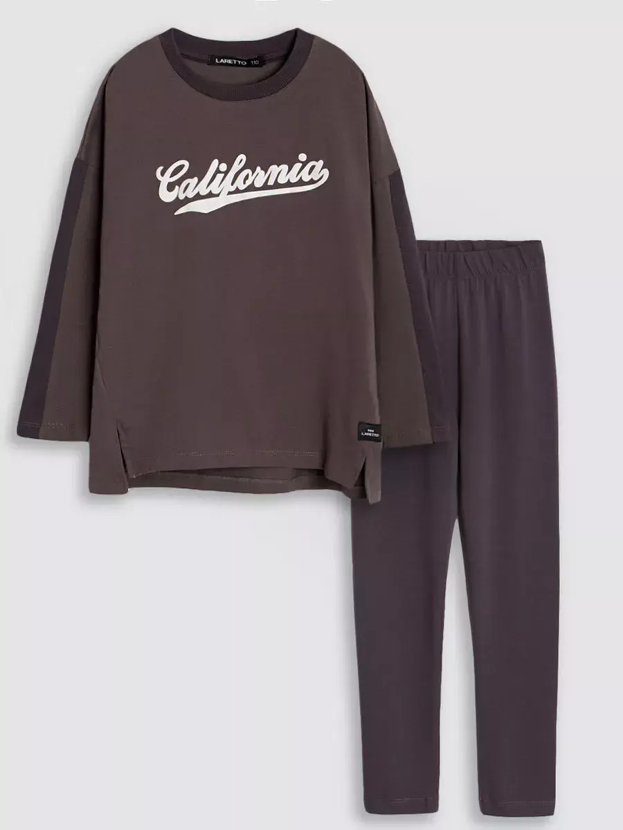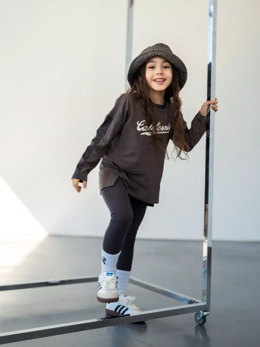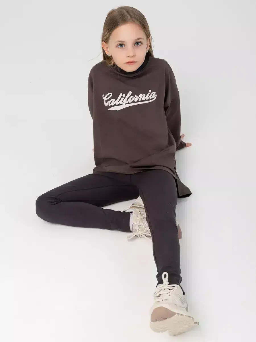 Коричневый спортивный костюм для девочки, состоящий из лонгслива и леггинсов - это идеальный выбор для любого случая. Он сочетает в себе удобство, стиль и функциональность, именно то, что необходимо каждому активному ребенку.