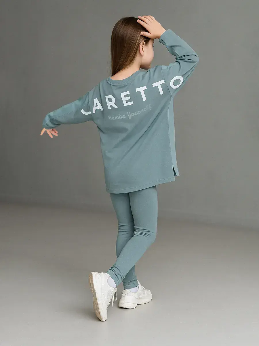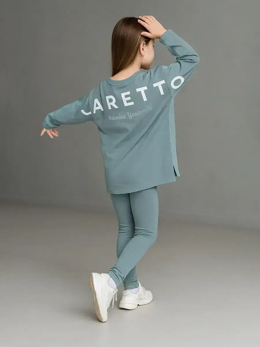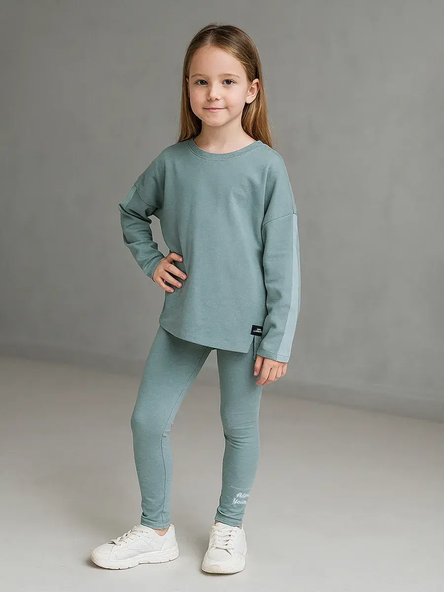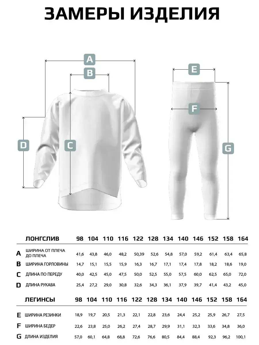 Спортивный костюм для девочек, который сочетает в себе стиль, комфорт и качество. Этот трикотажный детский костюм состоит из удобного лонгслива и модных леггинсов, которые подарят вашей малышке свободу движений в прохладные осенние дни.