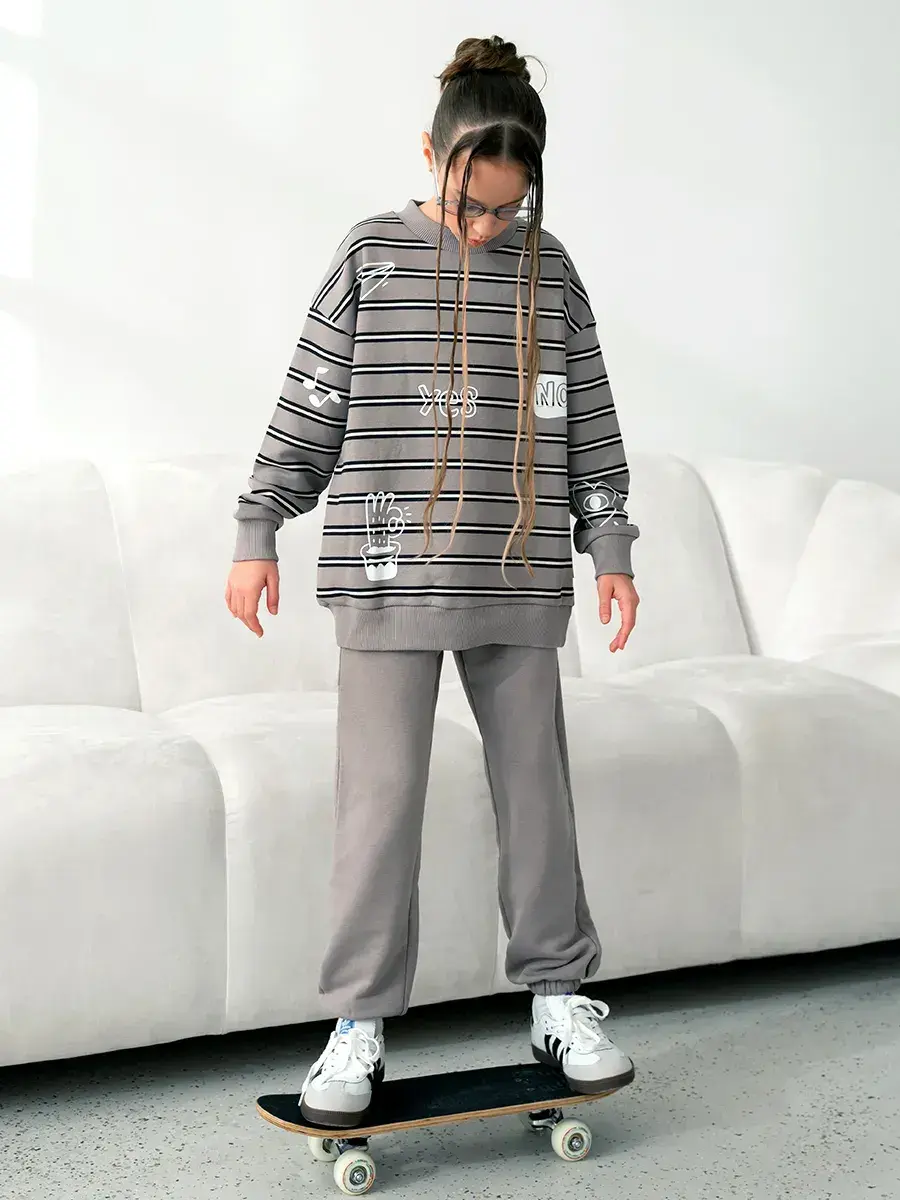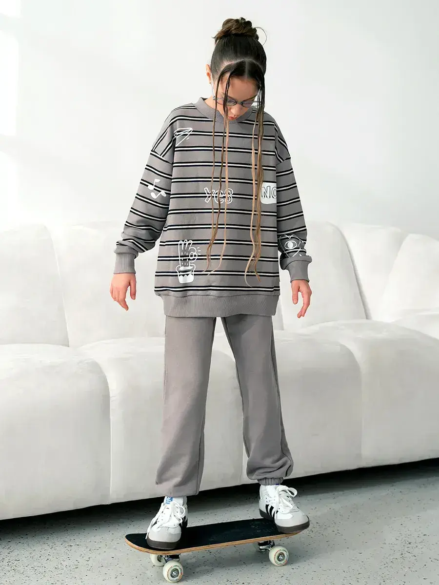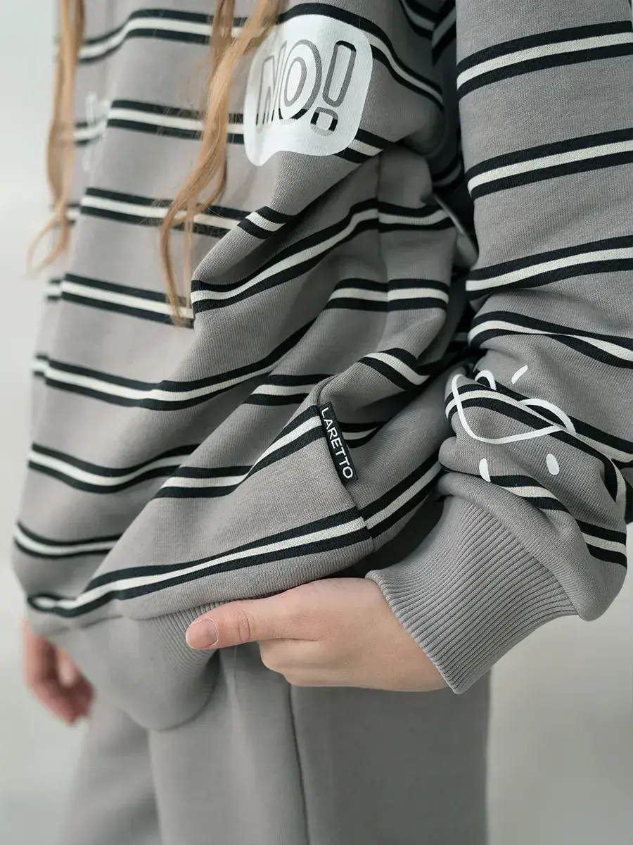 Свитшот в полоску для девочки будет актуален для создания как повседневных, так и спортивных образов.