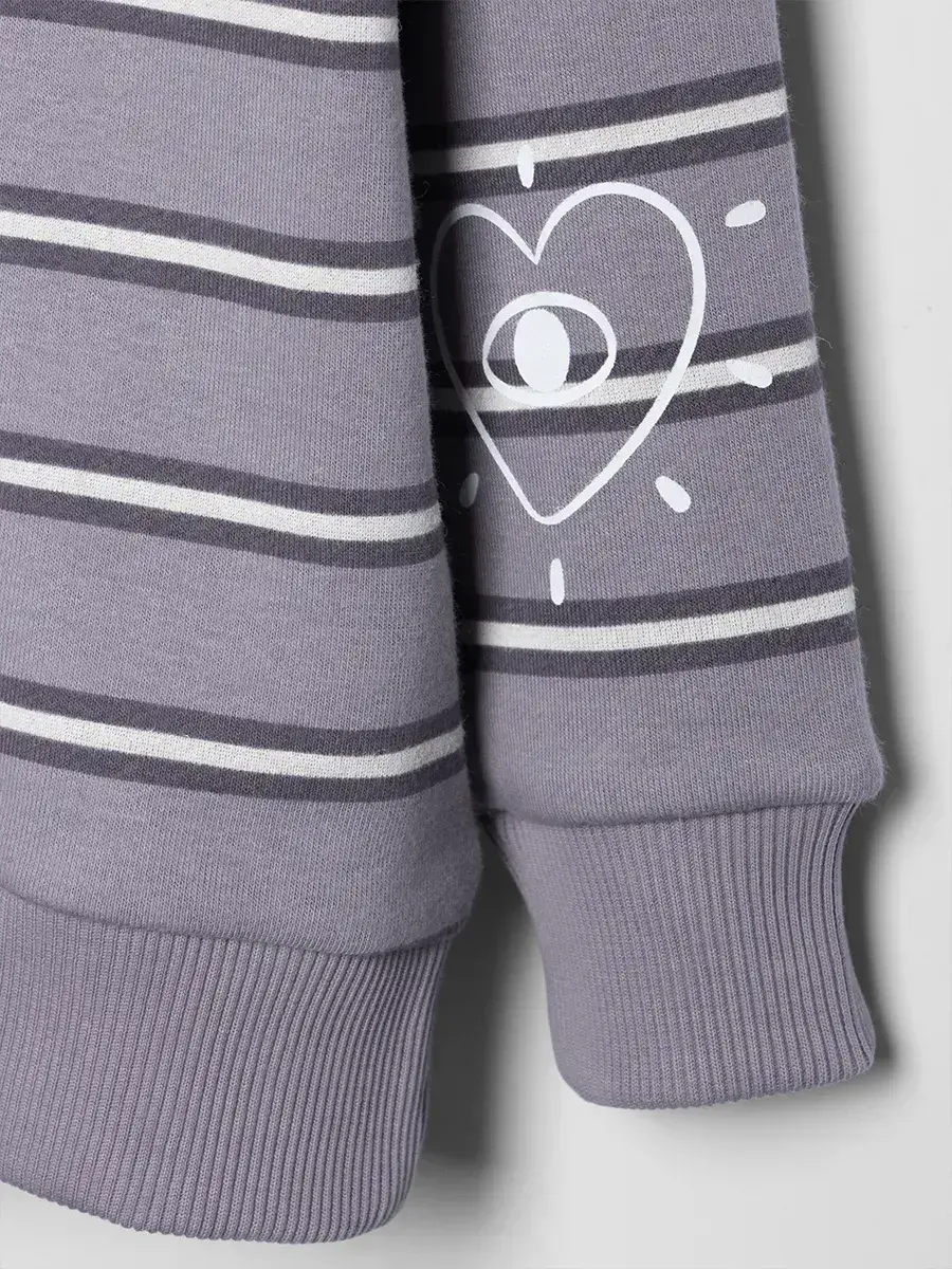Свитшот в полоску для девочки будет актуален для создания как повседневных, так и спортивных образов.