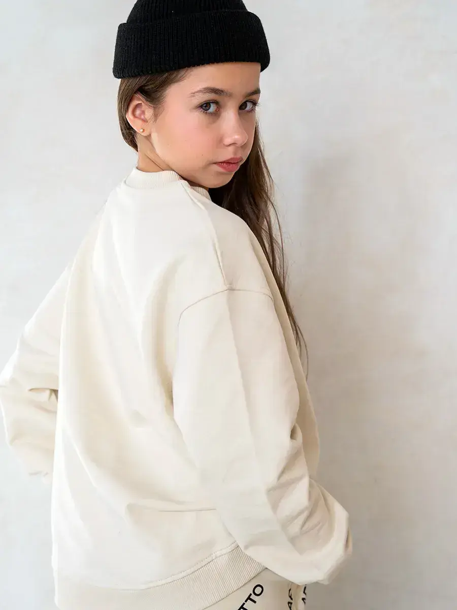 Базовый свитшот для девочки будет актуален для создания как повседневных, так и спортивных образов.