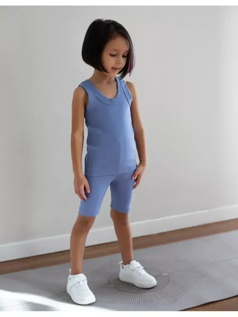 Костюм для девочки летний трикотажный - это не только практичная, но и стильная вещь для маленьких модниц! Майка детская и велосипедки отлично подойдут в жаркую летнюю погоду для активных игр, прогулок и пляжного отдыха. Одежда для девочек выполнена из трикотажа Премиум качества, очень приятная на ощуп и невероятна комфортная в носке. Шорты и футболка без рукавов предназначены для занятий физкультурой, гимнастикой, хореографией, танцами или бегом. Натуральная ткань хорошо впитывает влагу, быстро сохнет и не сковывает движений. Костюм двойка универсален и можно без труда создавать новые образы каждый день, заменяя верх или низ. Велосипедки детские создают красивый силуэт, подчеркивают талию, а широкая резинка не оставляет следов на коже Идеальный крой и качественное исполнение в сочетании с большим размерным рядом позволит выбрать детскую одежду не только малышам, но и подросткам. Спортивный детский костюм не имеет застежек, поэтому даже самым маленьким не составит труда одеваться самостоятельно. Костюм с велосипедками отлично подойдет для дома и отдыха, а также в качестве сменной одежды в детский сад вне зависимости от сезона. Шорты детские и майка топ из нашей коллекции - это качественная детская вещь, которая прослужит не один сезон. Однако следует соблюдать рекомендации по уходу и соблюдать температурный режим (не более 30С). Костюм для девочки из нашей коллекции непременно станет одним из самых любимых в гардеробе юной модицы!